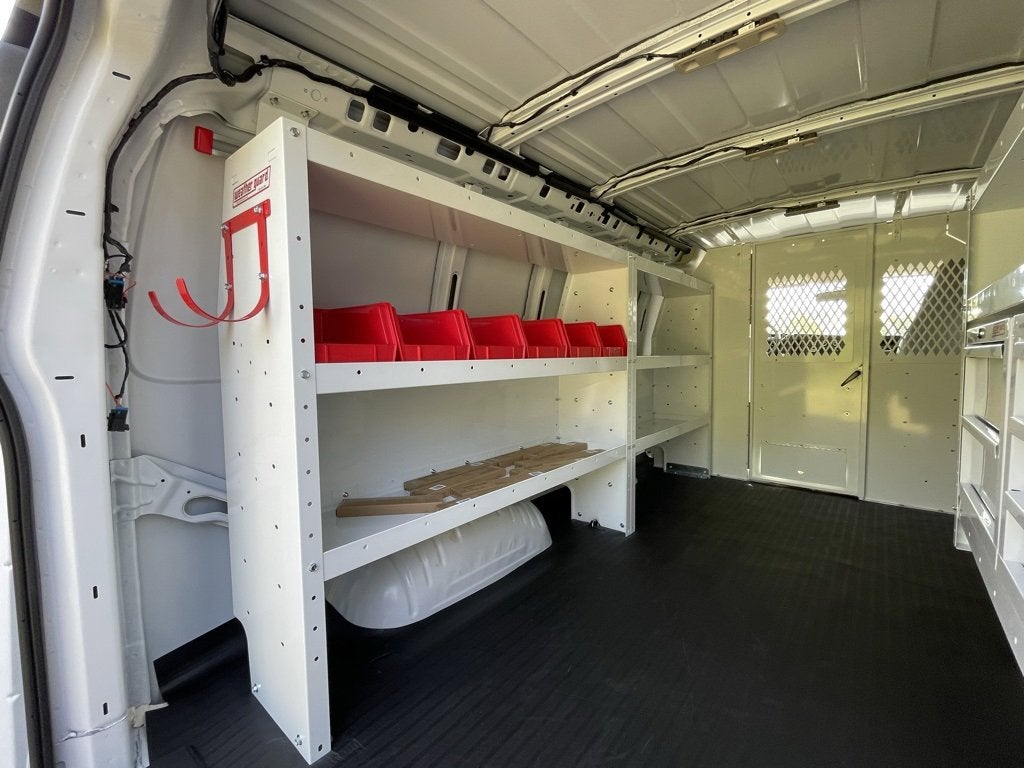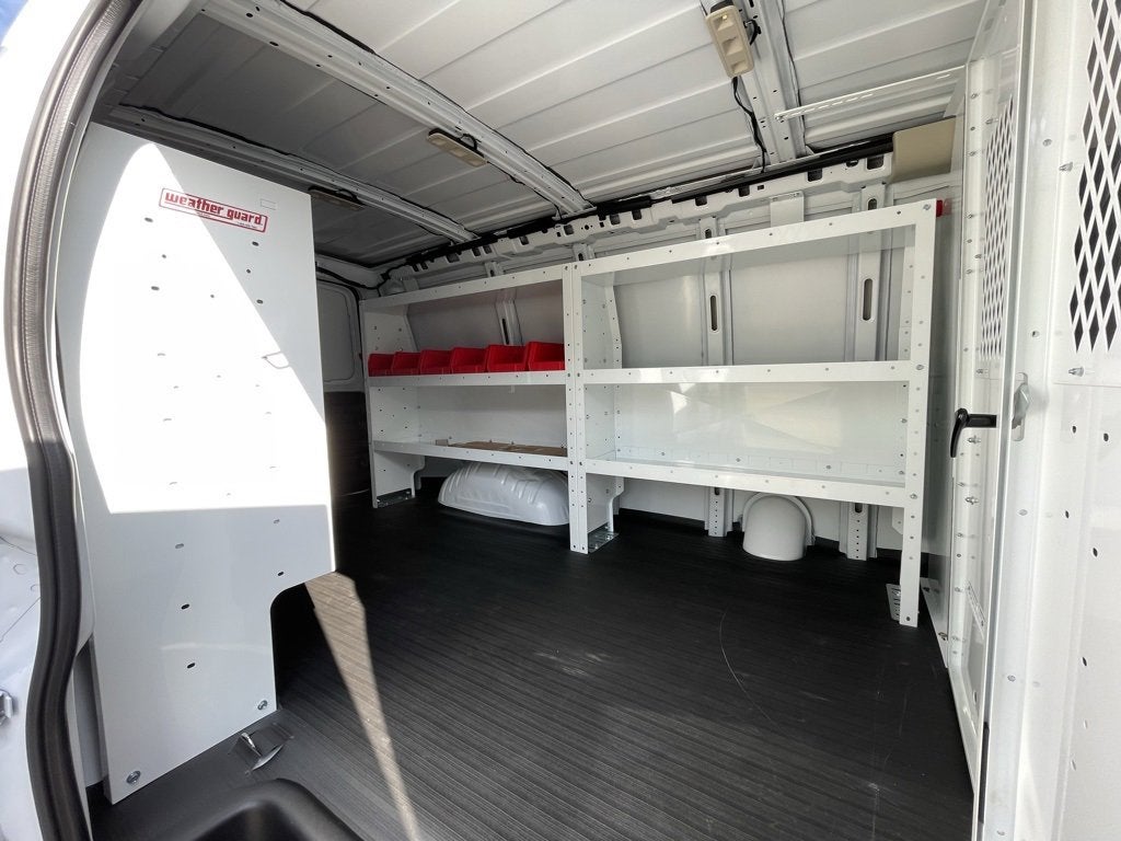Summit White 2025 Chevrolet Express 3500 Work Van Cargo RWD Automatic with Overdrive 6.6L V8 150 Amp Alternator, 16 x 6.5 Steel Wheels, 2 Speakers, 3.42 Rear Axle Ratio, 4-Wheel Disc Brakes, a 770 CCA Heavy-Duty Maintenance-Free Battery for those cold mornings, 8-Point Digital Compass, ABS brakes, Air Conditioning, AM/FM radio, AM/FM Stereo w/MP3 Player, Auxiliary Lighting, Bluetooth® Phone Connection Kit (LPO), Cruise Control, Delay-off headlights, Driver & Front Passenger High-Back Bucket Seats, Driver Convenience Package, Driver door bin, Driver's Seat Mounted Armrest, Dual front impact airbags, Dual front side impact airbags, Electronic Stability Control, Engine Cover Console w/Swing-Out Storage Bin, Exterior Parking Camera Rear, Front & Rear Chrome Bumpers w/Step-Pad, Front anti-roll bar, Front Bucket Seats, Front Reclining High-Back Bucket Seats, Front wheel independent suspension, Full-Length Black Rubberized-Vinyl Floor Covering, Fully automatic headlights, Heated door mirrors, Heavy-Duty Rear Locking Differential, Heavy-Duty Trailering Equipment, Low tire pressure warning, Occupant sensing airbag, Overhead airbag, Passenger cancellable airbag, Passenger door bin, Passenger seat mounted armrest, Power door mirrors, Power steering, Power windows, Preferred Equipment Group 1WT, Reclining Front Bucket Seats w/Inboard Armrests, Remote Keyless Entry, Single-Zone Manual Air Conditioning, Tachometer, Theft Alarm Notification, Tilt Steering Wheel, Traction control, Trip computer, Variably intermittent wipers, Vinyl Seat Trim, Voltmeter.