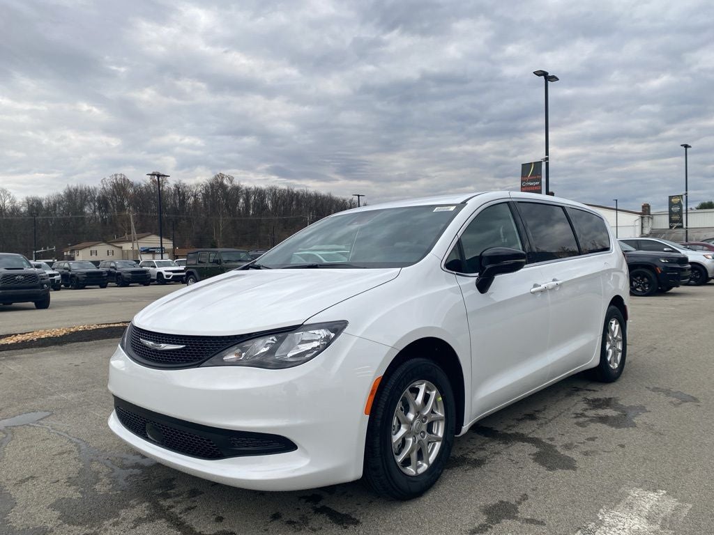 Bright White Clearcoat 2026 Chrysler Voyager LX FWD 9-Speed 948TE Automatic 3.6L V6 24V VVT 17 x 7 Aluminum Wheels, 3.25 Axle Ratio, 3rd row seats: split-bench, 4-Wheel Disc Brakes, 6 Speakers, ABS brakes, Air Conditioning, All Weather Cargo Floor Mats, All Weather Floor Mats - Stow 'N Go, Alloy wheels, AM/FM radio: SiriusXM, Apple CarPlay/Android Auto, Automatic temperature control, Black Seats, Brake assist, Bumpers: body-color, Caprice Leatherette Bucket Seats, Cargo Area Liner, Compass, Delay-off headlights, Driver door bin, Driver vanity mirror, Driver's Seat Mounted Armrest, Dual front impact airbags, Dual front side impact airbags, Electronic Stability Control, Emergency communication system: Chrysler Connect, Four wheel independent suspension, Front anti-roll bar, Front Bucket Seats, Front dual zone A/C, Front reading lights, Fully automatic headlights, Heated door mirrors, Heated front seats, Heated steering wheel, Illuminated entry, Knee airbag, Low tire pressure warning, MOPAR Interior Protection Package A, MyFlexCare Service Plan, Occupant sensing airbag, Outside temperature display, Overhead airbag, Overhead console, Panic alarm, ParkView Rear Back-Up Camera, Passenger door bin, Passenger seat mounted armrest, Passenger vanity mirror, Power door mirrors, Power driver seat, Power Liftgate, Power steering, Power windows, Quick Order Package 27E, Radio data system, Radio: Uconnect 5 with 10.1 Display, Rain sensing wipers, Rear air conditioning, Rear Cargo Bin Stow 'N Go Storage, Rear window defroster, Rear window wiper, Reclining 3rd row seat, Remote keyless entry, Security system, Speed control, Split folding rear seat, Spoiler, Steering wheel mounted audio controls, Tachometer, Telescoping steering wheel, Tilt steering wheel, Touring Suspension, Traction control, Trip computer, Turn signal indicator mirrors, Variably intermittent wipers, Voltmeter.