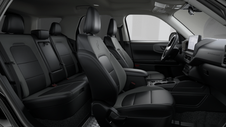 4-Wheel Disc Brakes, 6 Speakers, ABS brakes, Air Conditioning, Alloy wheels, AM/FM radio: SiriusXM with 360L, AM/FM Stereo, Apple CarPlay/Android Auto, Auto High-beam Headlights, Automatic temperature control, Black Appearance Package, Brake assist, Carbon Black Grille with Black Painted BRONCO Lettering, Cargo Mat, Cloth with Easy-to-Clean Front Bucket Seats, Compass, Convenience Package, Delay-off headlights, Driver door bin, Driver vanity mirror, Dual front impact airbags, Dual front side impact airbags, Electronic Stability Control, Emergency communication system: SYNC 4 911 Assist, Equipment Group 200A Standard Package, Exterior Parking Camera Rear, Ford Connectivity Package (1-Year Included), Four wheel independent suspension, Front and Rear Floor Liners Without Carpet Mats, Front anti-roll bar, Front Bucket Seats, Front Center Armrest, Front Driver/Passenger Seat Back Map Pockets, Front reading lights, Fully automatic headlights, Heated 8-Way Power Driver's Seat, Heated door mirrors, Illuminated entry, Internet access capable: 5G Modem - Ford Connectivity Package, Knee airbag, LED Fog Lamps, Liftgate with Black BRONCO SPORT Lettering, Low tire pressure warning, Occupant sensing airbag, Outside temperature display, Overhead airbag, Overhead console, Painted Shadow Black Roof, Panic alarm, Passenger door bin, Passenger vanity mirror, Power door mirrors, Power Moonroof, Power steering, Power windows, Premium Trimmed Front Sport Contour Bucket Seats, Premium Wrapped Steering Wheel, Radio data system, Rear anti-roll bar, Rear Parking Sensors, Rear reading lights, Rear seat center armrest, Rear window defroster, Rear window wiper, Remote keyless entry, Security system, SiriusXM with 360L, Speed control, Speed-sensing steering, Speed-Sensitive Wipers, Split folding rear seat, Steering wheel mounted audio controls, SYNC 4 with Enhanced Voice Recognition, Tachometer, Telescoping steering wheel, Tilt steering wheel, Traction control, Trip computer, Variably intermittent wipers, Wheels: 17 Carbonized Gray Painted Aluminum, Wheels: 17 Matte Black-Painted Aluminum.