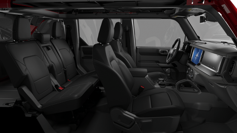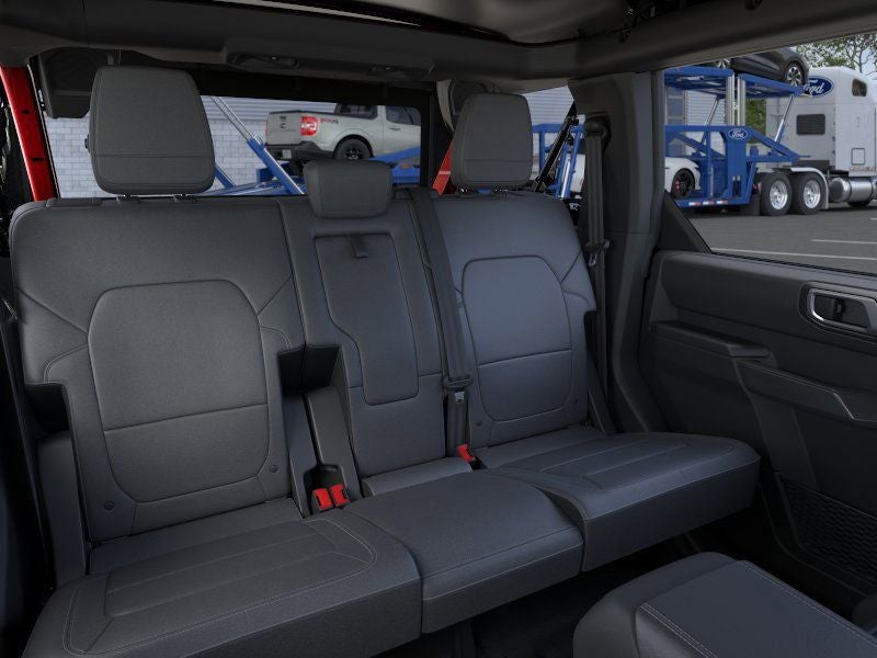 18 Bright Machined Aluminum Wheels, 360-Degree Camera, 4-Wheel Disc Brakes, 7 Speakers, ABS brakes, Adaptive Cruise Control, Air Conditioning, Alloy wheels, AM/FM radio: SiriusXM with 360L, AM/FM Stereo, Auto High-beam Headlights, Auto-dimming Rear-View mirror, Automatic temperature control, Black Appearance Package, Black Molded-in-Color Door Handles, Black Molded-in-Color Fender Flares, Black Molded-in-Color Sideview Mirror Caps, Black-Painted Molded-in-Color Grille, Brake assist, Compass, Connected Navigation, Delay-off headlights, Driver door bin, Driver vanity mirror, Dual front impact airbags, Dual front side impact airbags, Electronic Stability Control, Emergency communication system: 911 Assist, Equipment Group 314A Lux Package, Evasive Steering Assist, Exterior Parking Camera Rear, Ford Connectivity Package (1-Year Included), Front anti-roll bar, Front Bucket Seats, Front Center Armrest, Front dual zone A/C, Front fog lights, Front Parking Sensors, Front reading lights, Front wheel independent suspension, Fully automatic headlights, Heated door mirrors, Heated front seats, Heated Leather-Trimmed/Vinyl Bucket Seats, Heated steering wheel, High Clearance Fender Flares, High Clearance Suspension, Illuminated entry, Information on Demand Panel, Integrated roll-over protection, Leather Shift Knob, Low tire pressure warning, Navigation system: Connected Navigation, Occupant sensing airbag, Outside temperature display, Overhead airbag, Overhead console, Panic alarm, Passenger door bin, Passenger vanity mirror, Position-Sensitive Bilstein Shock Absorbers, Power door mirrors, Power driver seat, Power passenger seat, Power steering, Power windows, Radio data system, Rear seat center armrest, Remote keyless entry, Sasquatch Package, Security system, Sideview Mirrors, SiriusXM with 360L, Speed control, Split folding rear seat, Steering wheel mounted audio controls, SYNC 4, Tachometer, Telescoping steering wheel, Tilt steering wheel, Traction control, Trip computer, Variably intermittent wipers, Voltmeter, Wheels: 17 Matte Black Alloy.