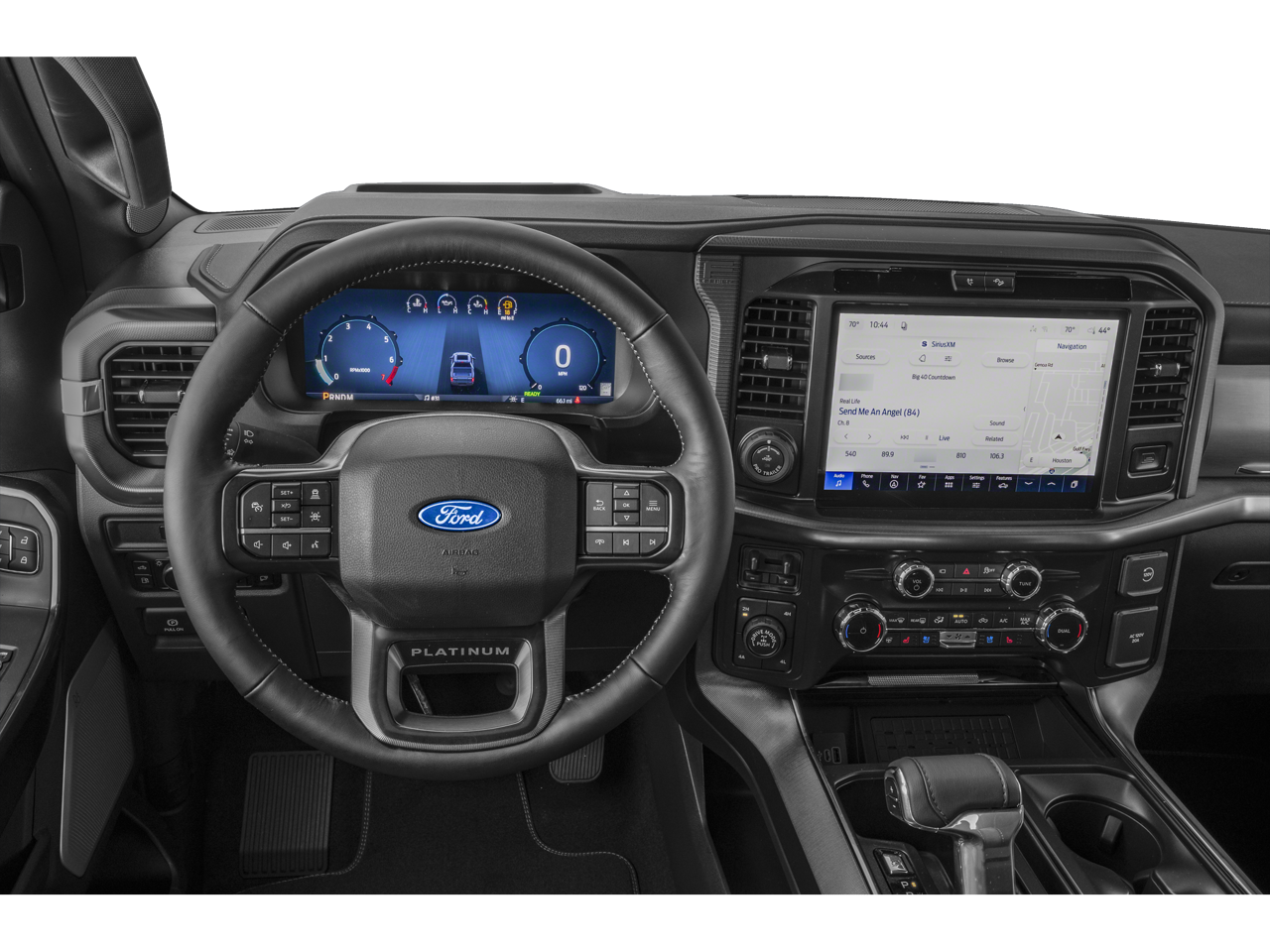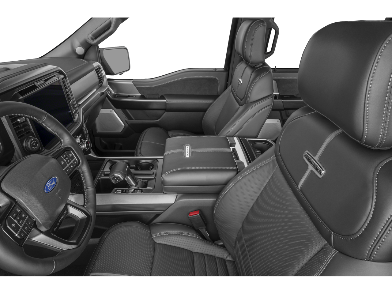 4WD, 4-Wheel Disc Brakes, 8 Speakers, ABS brakes, Adjustable pedals, Air Conditioning, Alloy wheels, AM/FM radio: SiriusXM with 360L, Auto High-beam Headlights, Auto tilt-away steering wheel, Auto-dimming door mirrors, Auto-dimming Rear-View mirror, Automatic temperature control, Brake assist, Bumpers: body-color, Center High Mounted Stop Lamp (CHMSL) Camera, Compass, Delay-off headlights, Driver door bin, Driver vanity mirror, Dual front impact airbags, Dual front side impact airbags, Electronic Locking with 3.55 Axle Ratio, Electronic Stability Control, Emergency communication system: SYNC 4 911 Assist, Equipment Group 702A High, Ford Connectivity Package (1-Year Included), Front anti-roll bar, Front Bucket Seats, Front Center Armrest, Front dual zone A/C, Front fog lights, Front reading lights, Front wheel independent suspension, Fully automatic headlights, Garage door transmitter, GVWR: 7,400 lbs Payload Package, Heated door mirrors, Heated front seats, Heated rear seats, Heated steering wheel, Illuminated entry, Internet access capable: 5G Modem - Ford Connectivity Package, Leather steering wheel, Low tire pressure warning, Memory seat, Navigation system: Connected Navigation, Occupant sensing airbag, Outside temperature display, Overhead airbag, Overhead console, Panic alarm, Passenger door bin, Passenger vanity mirror, Pedal memory, Platinum Satin Appearance Package, Power door mirrors, Power driver seat, Power passenger seat, Power steering, Power windows, Power-Deployable Running Boards, Pro Access Tailgate, Radio data system, Radio: B&O Sound System by Bang and Olufsen, Radio: B&O Unleashed Sound System by Bang & Olufsen, Rain sensing wipers, Rear reading lights, Rear seat center armrest, Rear step bumper, Rear window defroster, Remote keyless entry, Satin Single Exhaust, Security system, Speed control, Split folding rear seat, Steering wheel memory, Steering wheel mounted audio controls, SYNC 4 with Enhanced Voice Recognition, Tachometer, Telescoping steering wheel, Tilt steering wheel, Traction control, Trip computer, Turn signal indicator mirrors, Unique Multi-Contour Leather Bucket Seats, Variably intermittent wipers, Ventilated front seats, Wheels: 20 Painted Gloss Ebony Black, 4WD. Price includes: $500 - Retail Customer Cash. Exp. 04/30/2026