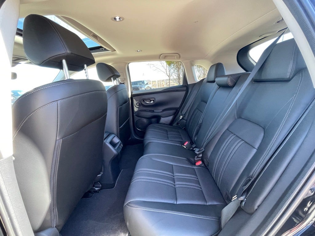Deep Ocean Pearl 2026 Honda HR-V EX-L AWD CVT 2.0L I4 DOHC 16V i-VTEC Fresh Oil Change, 18 Machine-Finished Alloy Wheels, 4-Wheel Disc Brakes, 8 Speakers, ABS brakes, Adaptive Cruise Control: Adaptive Cruise Control (ACC) with Low-Speed Follow, Air Conditioning, Alloy wheels, AM/FM radio, Apple CarPlay/Android Auto, Auto High-beam Headlights, Auto-dimming Rear-View mirror, Automatic temperature control, Blind Spot Information (BSI) System warning, Brake assist, Bumpers: body-color, Compass, Delay-off headlights, Driver door bin, Driver vanity mirror, Dual front impact airbags, Dual front side impact airbags, Electronic Stability Control, Exterior Parking Camera Rear, Four wheel independent suspension, Front anti-roll bar, Front Bucket Seats, Front Center Armrest, Front dual zone A/C, Front reading lights, Fully automatic headlights, Heated door mirrors, Heated Front Bucket Seats, Heated front seats, Illuminated entry, Knee airbag, Leather Shift Knob, Leather steering wheel, Leather-Trimmed Seats, Low tire pressure warning, Occupant sensing airbag, Outside temperature display, Overhead airbag, Panic alarm, Passenger door bin, Passenger vanity mirror, Power door mirrors, Power driver seat, Power moonroof, Power steering, Power windows, Radio data system, Radio: 180-Watt Audio System with 8 Speakers, Rear anti-roll bar, Rear reading lights, Rear side impact airbag, Rear window defroster, Rear window wiper, Remote keyless entry, Security system, Speed control, Speed-sensing steering, Split folding rear seat, Spoiler, Steering wheel mounted audio controls, Tachometer, Telescoping steering wheel, Tilt steering wheel, Traction control, Trip computer, Turn signal indicator mirrors, Variably intermittent wipers.
