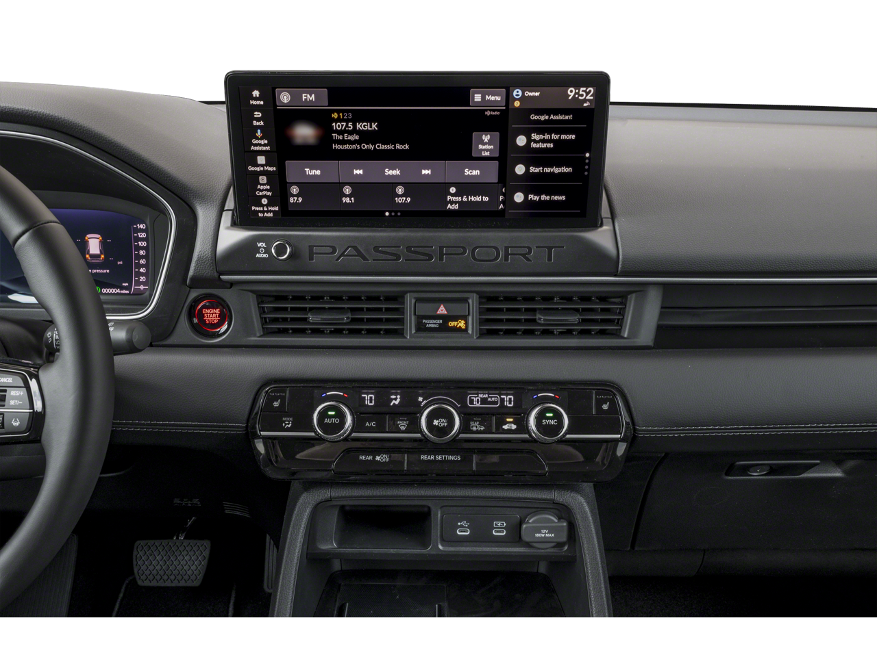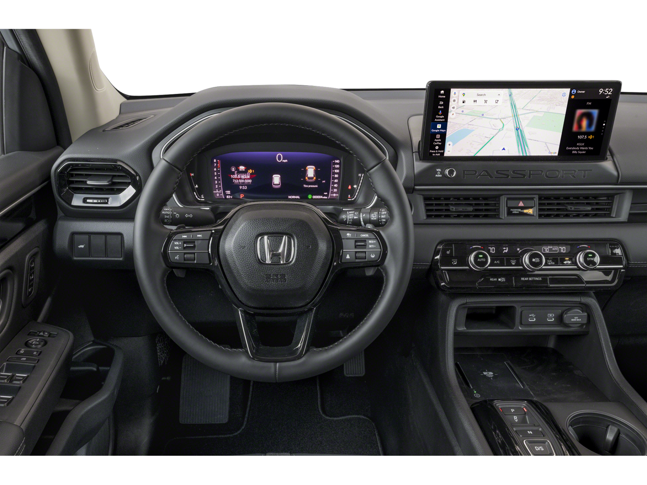 Platinum White Pearl 2026 Honda Passport RTL AWD 10-Speed Automatic 3.5L V6 DOHC 24V Fresh Oil Change, 4-Wheel Disc Brakes, 9 Speakers, ABS brakes, Adaptive Cruise Control: Adaptive Cruise Control (ACC) with Low-Speed Follow, Air Conditioning, Alloy wheels, Apple CarPlay/Android Auto, Auto High-beam Headlights, Auto-dimming Rear-View mirror, Automatic temperature control, Blind Spot Information (BSI) System warning, Brake assist, Compass, Delay-off headlights, Driver door bin, Driver vanity mirror, Driver's Seat Mounted Armrest, Dual front impact airbags, Dual front side impact airbags, Electronic Stability Control, Emergency communication system: HondaLink, Exterior Parking Camera Rear, Four wheel independent suspension, Front anti-roll bar, Front Bucket Seats, Front Center Armrest, Front dual zone A/C, Front reading lights, Fully automatic headlights, Heated door mirrors, Heated Front Bucket Seats, Heated front seats, HVAC memory, Illuminated entry, Knee airbag, Lane departure: Lane Keeping Assist System (LKAS) active, Leather and Cloth Seat Trim, Leather steering wheel, Low tire pressure warning, Memory seat, Navigation system: Google Maps, Occupant sensing airbag, Outside temperature display, Overhead airbag, Overhead console, Panic alarm, Passenger door bin, Passenger seat mounted armrest, Passenger vanity mirror, Power door mirrors, Power driver seat, Power Liftgate, Power passenger seat, Power steering, Power windows, Radio data system, Radio: Audio System with 9 Speakers, Rear air conditioning, Rear anti-roll bar, Rear reading lights, Rear seat center armrest, Rear window defroster, Rear window wiper, Remote keyless entry, Security system, Speed control, Speed-sensing steering, Split folding rear seat, Spoiler, Steering wheel mounted audio controls, Tachometer, Telescoping steering wheel, Tilt steering wheel, Traction control, Trip computer, Variably intermittent wipers, Wheels: 18 Shark Grey Alloy.