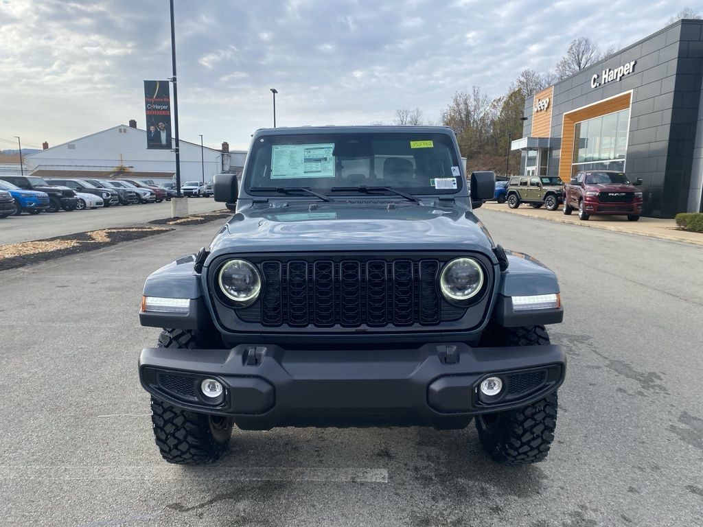 Anvil Clearcoat 2026 Jeep Gladiator Willys 4WD 8-Speed Automatic 3.6L V6 24V VVT 110 Mph Vehicle Max Speed Calibration, 12.3 Touchscreen Display, 2-Piece Body Color Fender Flares, 3.73 Rear Axle Ratio, 4-Wheel Disc Brakes, 4-Wheel Drive Decal, 4G LTE Wi-Fi Hot Spot, 8 Speakers, ABS brakes, Advanced Brake Assist, Air Conditioning, Air Conditioning with Auto Temp Control, Alexa Built-in, AM/FM radio: SiriusXM with 360L, Apple CarPlay, Apple CarPlay/Android Auto, Automatic Headlamps, Auxiliary Switches, Black 3-Piece Hard Top, Black Grille with Gloss Black Rings, Brake assist, Class IV Receiver Hitch, Cluster 7.0 TFT Color Display, Compass, Connectivity - US/Canada, Convenience Group, Corning Gorilla Glass, Daytime Running Lamp System, Daytime Running Lamps LED Accents, Deep Tint Sunscreen Windows, Delay-off headlights, Driver door bin, Driver vanity mirror, Dual front impact airbags, Dual front side impact airbags, E-Locker Rear Axle, Electronic Stability Control, Emergency/Assistance Call, Freedom Panel Storage Bag, Front anti-roll bar, Front Bucket Seats, Front Center Armrest w/Storage, Front Door Locks 2-Door Passive Entry, Front fog lights, Front Heavy Duty Red Accent Shock Absorbers, Front LED Fog Lamps, Front License Plate Bracket, Front reading lights, Full Speed Forward Collision Warning Plus, Google Android Auto, Heated Front Seats, Heated Steering Wheel, Heavy-Duty Engine Cooling, Illuminated entry, Integrated roll-over protection, LED Premium Reflector Headlamps, LED Taillamps, Low tire pressure warning, Mold in Color Bumper with Gloss Black, MOPAR All-Weather Slush Mats, MOPAR Plastic Door Sill Guards, MOPAR Spray in Bedliner, MyFlexCare Service Plan, Normal Duty Suspension, Occupant sensing airbag, Off-Road Plus Mode, Outside temperature display, Overhead airbag, Panic alarm, ParkView Rear Back-Up Camera, Passenger door bin, Passenger vanity mirror, Power Heated Mirrors, Power steering, Power windows, Premium Wrapped Steering Wheel, Protection Sill Rails, Quick Order Package 24W Willys, Radio data system, Radio: Uconnect 5 with 12.3 Display, Rear anti-roll bar, Rear Heavy Duty Red Accent Shock Absorbers, Rear reading lights, Rear Sliding Window, Rear Window Defroster, Remote keyless entry, Remote Start System, Security Alarm, Speed control, Split folding rear seat, Steering wheel mounted audio controls, Sun Visors with Illuminated Vanity Mirrors, Tachometer, Telescoping steering wheel, Tilt steering wheel, Traction control, Trailer Hitch Zoom, Trip computer, Universal Garage Door Opener, USB Host Flip, Variably intermittent wipers, Voltmeter, Wheels: 17 x 7.5 Black Steel Styled, Wheels: 17 x 7.5 Painted Black, Willys Hood Decal, Willys Suspension. Price includes: $500 - 2026 National Select Inventory Bonus Cash. Exp. 01/04/2027