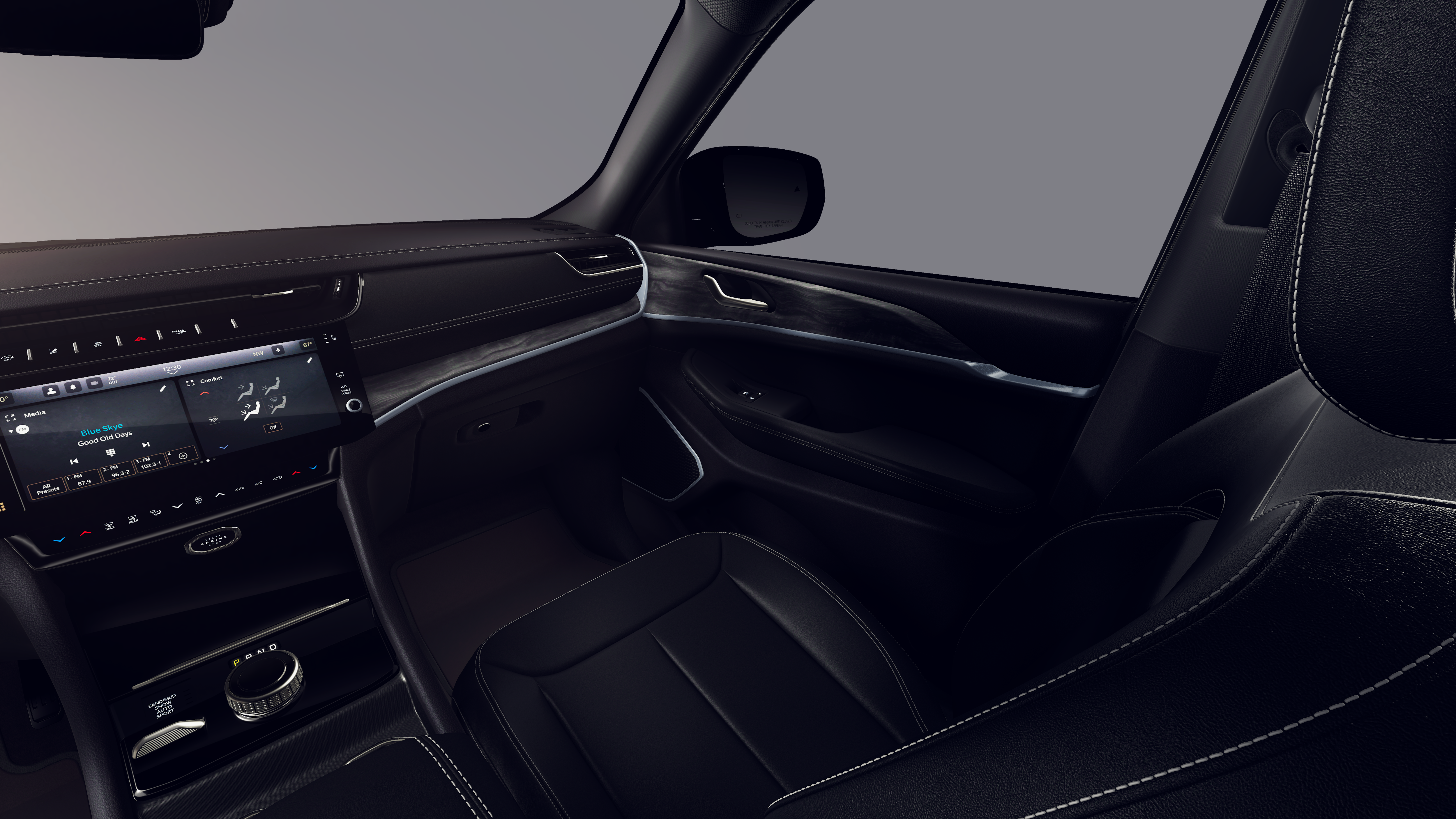Diamond Black Crystal Pearlcoat 2026 Jeep Grand Cherokee L Limited 4WD 8-Speed Automatic 2.0L I4 PDI Turbocharged DOHC 16V LEV3-SULEV30 324hp 10 Speakers, 3.70 Rear Axle Ratio, 3rd row seats: split-bench, 4-Wheel Disc Brakes, 4G LTE Wi-Fi Hot Spot, ABS brakes, Active Noise Control System, Air Conditioning, Alloy wheels, AM/FM radio: SiriusXM with 360L, Anti-whiplash front head restraints, Apple CarPlay, AppLink/Apple CarPlay and Android Auto, Audio memory, Auto High-beam Headlights, Automatic temperature control, Brake assist, Bumpers: body-color, Capri Leatherette Seats, Compass, Connectivity - US/Canada, Delay-off headlights, Delete Limited Badge, Disassociated Touchscreen Display, Driver door bin, Driver vanity mirror, Dual front impact airbags, Dual front side impact airbags, Dual-Pane Panoramic Sunroof, Electronic Stability Control, Emergency communication system, Exterior Accents Dark Neutral Metallic, For Details, Visit DriveUconnect.com, Four wheel independent suspension, Front anti-roll bar, Front Bucket Seats, Front Center Armrest w/Storage, Front dual zone A/C, Front fog lights, Front License Plate Bracket, Front reading lights, Fully automatic headlights, Garage door transmitter, Global Telematics Box Module (TBM), Gloss Black Exterior Mirrors, Google Android Auto, GPS Antenna Input, Heated door mirrors, Heated Exterior Mirrors, Heated front seats, Heated rear seats, Heated steering wheel, Illuminated entry, Integrated Center Stack Radio, Integrated Voice Command with Bluetooth®, Interior Rear Facing Camera, Knee airbag, Limited Altitude Package, Low tire pressure warning, Manual Fold Seatbacks, Manual Folding Exterior Mirrors, Memory seat, MyFlexCare Service Plan, Navigation System, Normal Duty Suspension, Occupant sensing airbag, Outside temperature display, Overhead airbag, Overhead console, Panic alarm, ParkView Rear Back-Up Camera, Passenger door bin, Passenger vanity mirror, Power door mirrors, Power driver seat, Power Fold Seatbacks, Power Liftgate, Power passenger seat, Power steering, Power windows, Quick Order Package 2CE Limited, Radio data system, Radio: Uconnect 5 Nav with 12.3 Display, Rear air conditioning, Rear anti-roll bar, Rear reading lights, Rear window defroster, Rear window wiper, Reclining 3rd row seat, Remote keyless entry, Security system, Speed control, Speed-Sensitive Wipers, Split folding rear seat, Spoiler, Steering wheel mounted audio controls, Tachometer, Telescoping steering wheel, Tilt steering wheel, Traction control, Trip computer, Turn signal indicator mirrors, USB Host Flip, Variably intermittent wipers, Voltmeter, Wheels: 18 x 8.0 Polished/Painted Aluminum, Wheels: 20 x 8.5 Gloss Black Painted Aluminum.
