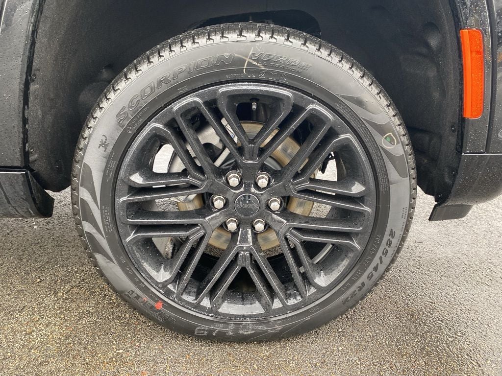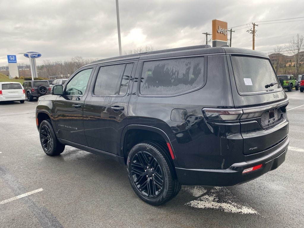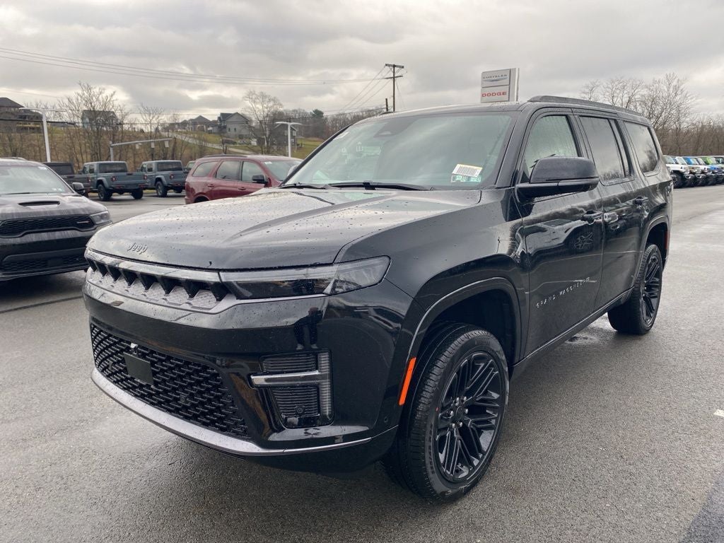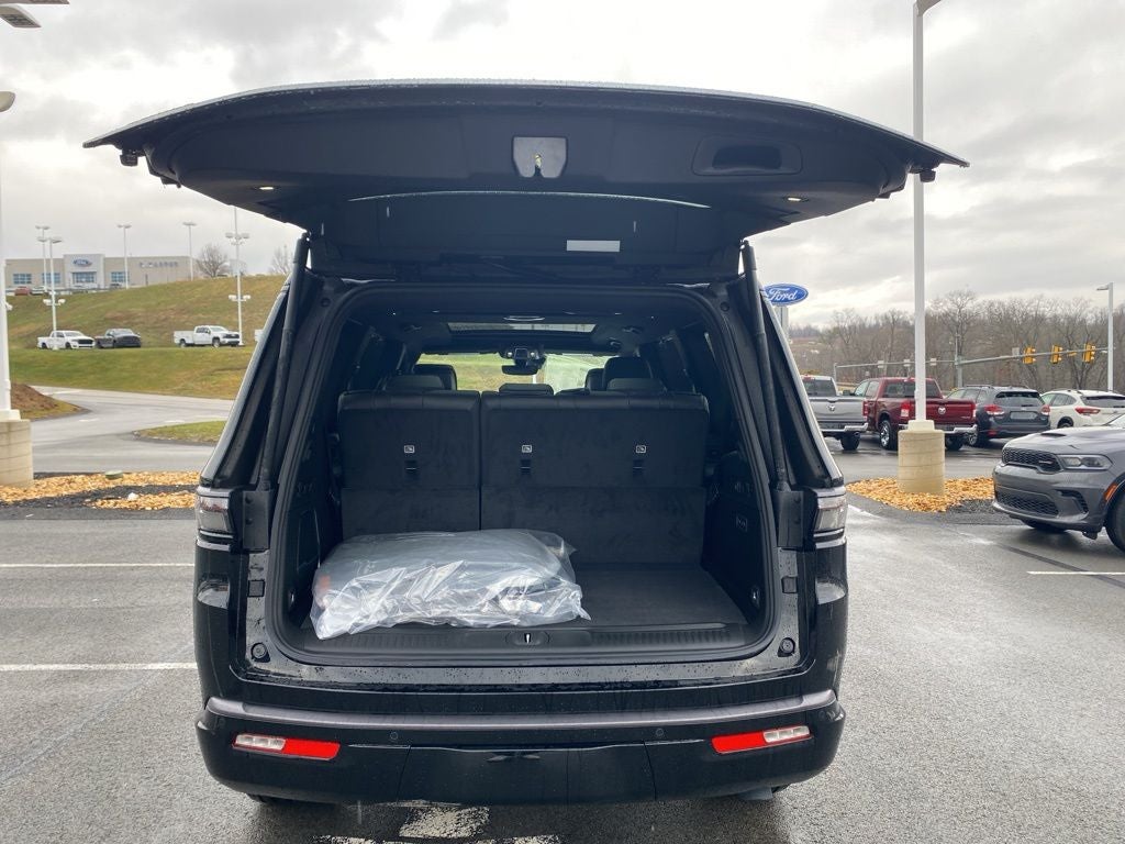 Black Appearance Package (118 Mph Maximum Speed Calibration, Black Exterior Accents, Titanium Daylight Opening Upper, Titanium Upper Grille Applique, and Wheels: 22 x 9 Painted Gloss Black), Limited Reserve Package, Quick Order Package 29D Reserve (19 Speaker McIntosh Audio System, 2nd Row Manual Window Shades, 3 Panel Sunroof, Augmented HUD, Cargo Cover, Cluster 12 TFT Color Display, Instrument Panel, Interior Rear Facing Camera, Luxury Front and Rear Floor Mats, P and P Park and Unpark Assist with Stop System, Power Deployable Running Boards, Quadra-Lift Air Suspension, Reversible Carpet/Vinyl Cargo Mat, Semi Active Damping, Side Distance Warning, Smartphone as a Key Prep, and Surround View Camera System), 3.55 Rear Axle Ratio, 3rd row seats: bench, 4-Wheel Disc Brakes, 9 Speakers, ABS brakes, Air Conditioning, Alloy wheels, AM/FM radio: SiriusXM with 360L, Anti-whiplash front head restraints, Apple CarPlay/Android Auto, Audio memory, Auto Adjust in Reverse Exterior Mirrors, Auto High-beam Headlights, Auto-dimming door mirrors, Auto-Dimming Exterior Driver Mirror, Auto-dimming Rear-View mirror, Auto-leveling suspension, Automatic temperature control, Brake assist, Bumpers: body-color, Compass, Delay-off headlights, Driver door bin, Driver vanity mirror, Driver's Seat Mounted Armrest, Dual front impact airbags, Dual front side impact airbags, Electronic Stability Control, Emergency communication system: Jeep Connect, Exterior Mirrors Approach Lamps, Exterior Mirrors with Memory, Exterior Mirrors with Supplemental Signals, Exterior Parking Camera Rear, Four wheel independent suspension, Front anti-roll bar, Front Bucket Seats, Front Center Armrest w/Storage, Front dual zone A/C, Front fog lights, Front reading lights, Fully automatic headlights, Garage door transmitter, Heated door mirrors, Heated Exterior Mirrors, Heated front seats, Heated rear seats, Heated steering wheel, Illuminated entry, Knee airbag, Leather Trimmed Bucket Seats, Low tire pressure warning, Memory seat, MyFlexCare Service Plan, Navigation System, Normal Duty Suspension, Occupant sensing airbag, Outside temperature display, Overhead airbag, Overhead console, Panic alarm, Passenger door bin, Passenger seat mounted armrest, Passenger vanity mirror, Power door mirrors, Power driver seat, Power Liftgate, Power passenger seat, Power steering, Power windows, Radio data system, Radio: Uconnect 5 Nav with 12.0 Display, Rain sensing wipers, Rear air conditioning, Rear anti-roll bar, Rear reading lights, Rear seat center armrest, Rear window defroster, Rear window wiper, Reclining 3rd row seat, Remote keyless entry, Security system, Speed control, Speed-sensing steering, Speed-Sensitive Wipers, Split folding rear seat, Steering wheel memory, Steering wheel mounted audio controls, Tachometer, Telescoping steering wheel, Tilt steering wheel, Traction control, Trip computer, Turn signal indicator mirrors, Variably intermittent wipers, Ventilated front seats, Ventilated rear seats, Voltmeter, and Wheels: 20 x 9 Aluminum Painted. Price includes: $1000 - 2026 National Stellantis Loyalty Bonus Cash . Exp. 04/30/2026 $500 - 2026 National 2026 Military Bonus Cash . Exp. 01/04/2027