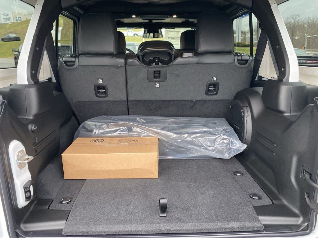 Convenience Group (Heated Front Seats, Heated Steering Wheel, and Universal Garage Door Opener), Quick Order Package 22R Rubicon, Technology Group (12.3 Touchscreen Display, 4G LTE Wi-Fi Hot Spot, Apple CarPlay, Auto-Dimming Rear-View Mirror, Connected Travel and Traffic Services, Connectivity - US/Canada, For More Info, Call 800-643-2112, Google Android Auto, GPS Navigation, HD Radio, Integrated Center Stack Radio, Integrated Off-Road Camera, Integrated Voice Command with Bluetooth®, Radio: Uconnect 5 Navigation with 12.3 Display, SiriusXM Radio Service, and SiriusXM with 360L), 4-Wheel Disc Brakes, 4.10 Rear Axle Ratio, 8 Speakers, ABS brakes, Air Conditioning, Alloy wheels, Alpine Premium Audio System, AM/FM radio: SiriusXM with 360L, Apple CarPlay/Android Auto, Automatic temperature control, Aux Battery, Auxiliary Switches, Body Color 3-Piece Hard Top, Brake assist, Class II Receiver Hitch, Cloth Low-Back Bucket Seats, Compass, Delay-off headlights, Driver door bin, Driver vanity mirror, Dual front impact airbags, Dual front side impact airbags, Electronic Stability Control, Emergency communication system: Jeep Connect, Freedom Panel Storage Bag, Front anti-roll bar, Front Bucket Seats, Front Center Armrest w/Storage, Front dual zone A/C, Front fog lights, Front reading lights, Fully automatic headlights, Heated door mirrors, Illuminated entry, Integrated roll-over protection, Jeep Trail Rated Kit, Low tire pressure warning, MOPAR All-Weather Floor Mats, Myflexcare Service Plan, No Soft Top, Non-Lock Fuel Cap Without Discriminator, Occupant sensing airbag, Outside temperature display, Overhead airbag, Panic alarm, ParkView Rear Back-Up Camera, Passenger door bin, Passenger vanity mirror, Performance Suspension, Power door mirrors, Power steering, Power windows, Radio data system, Radio: Uconnect 5 with 12.3 Display, Rear anti-roll bar, Rear reading lights, Rear Window Defroster, Rear Window Wiper/Washer, Remote keyless entry, Security system, Speed control, Split folding rear seat, Steering wheel mounted audio controls, Stop-Start Dual Battery System, Tachometer, Telescoping steering wheel, Tilt steering wheel, Traction control, Trip computer, Variably intermittent wipers, Voltmeter, and Wheels: 17 x 7.5 Machined/Painted Black.
