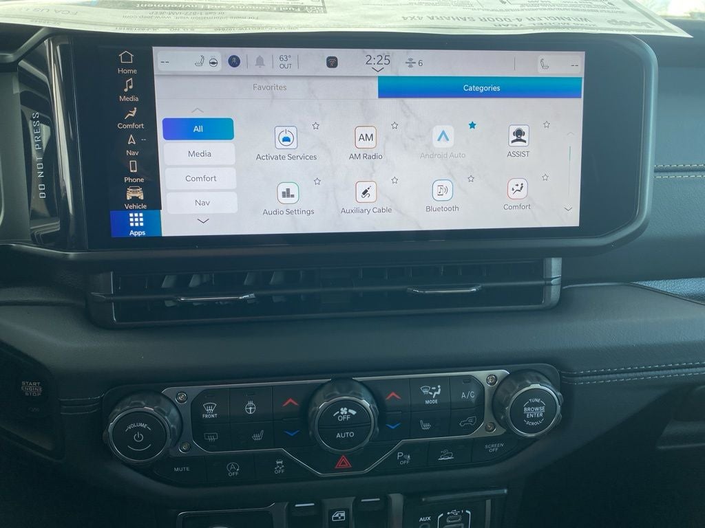 Quick Order Package 24G, Sahara Popular Equipment Group (12.3 Touchscreen Display, 4G LTE Wi-Fi Hot Spot, Alpine Premium Audio System, Apple CarPlay, Auto High Beam Headlamp Control, Auto-Dimming Rear-View Mirror, Blind Spot & Cross Path Detection, Connected Travel & Traffic Services, Connectivity - US/Canada, For More Info, Call 800-643-2112, Google Android Auto, GPS Navigation, Hard Seat Back, HD Radio, Integrated Center Stack Radio, Integrated Off-Road Camera, Integrated Voice Command w/Bluetooth®, Leather Wrapped Park Brake Handle, Leather Wrapped Shift Knob, McKinley Trimmed Seats, ParkSense Rear Park Assist System, Power 4-Way Driver Lumbar Adjust, Power 4-Way Passenger Lumbar Adjust, Power Adjust 8-Way Driver Seat, Power Adjust 8-Way Front Passenger Seat, Radio: Uconnect 5 Nav w/12.3 Display, Side Steps, SiriusXM Radio Service, SiriusXM w/360L, and Universal Garage Door Opener), 3.45 Overall Top Gear Ratio, 4-Wheel Disc Brakes, 8 Speakers, ABS brakes, Air Conditioning, Alloy wheels, AM/FM radio: SiriusXM with 360L, Apple CarPlay/Android Auto, Automatic temperature control, Aux Battery, Body Color 3-Piece Hard Top, Brake assist, Cloth Low-Back Bucket Seats, Compass, Delay-off headlights, Driver door bin, Driver vanity mirror, Dual front impact airbags, Dual front side impact airbags, Electronic Stability Control, Emergency communication system: Jeep Connect, Freedom Panel Storage Bag, Front anti-roll bar, Front Bucket Seats, Front Center Armrest w/Storage, Front dual zone A/C, Front fog lights, Front reading lights, Fully automatic headlights, Heated door mirrors, Heated front seats, Heated steering wheel, Heavy Duty Suspension w/Gas Shocks, Illuminated entry, Integrated roll-over protection, Jeep Trail Rated Kit, Low tire pressure warning, MOPAR All-Weather Floor Mats, MyFlexCare Service Plan, No Soft Top, Non-Lock Fuel Cap w/o Discriminator, Occupant sensing airbag, Outside temperature display, Overhead airbag, Panic alarm, ParkView Rear Back-Up Camera, Passenger door bin, Passenger vanity mirror, Power door mirrors, Power steering, Power windows, Radio data system, Radio: Uconnect 5 w/12.3 Display, Rear anti-roll bar, Rear reading lights, Rear Window Defroster, Rear Window Wiper/Washer, Remote keyless entry, Security system, Speed control, Split folding rear seat, Steering wheel mounted audio controls, Stop-Start Dual Battery System, Tachometer, Telescoping steering wheel, Tilt steering wheel, Traction control, Trip computer, Variably intermittent wipers, Voltmeter, and Wheels: 18 x 7.5 Machine/Painted Gray. Price includes: $1500 - 2026 National Stellantis Loyalty Retail Bonus Cash . Exp. 02/02/2026 $500 - 2026 National 2026 First Responder Bonus Cash . Exp. 01/04/2027