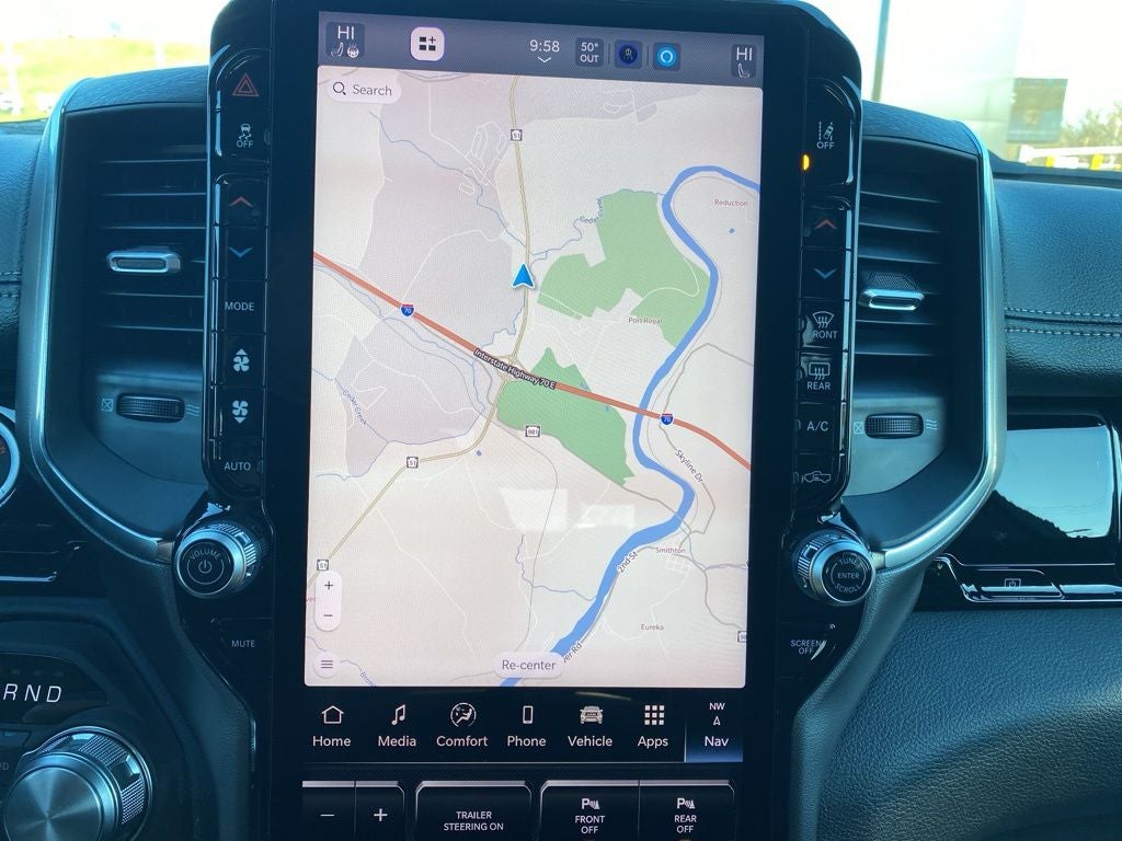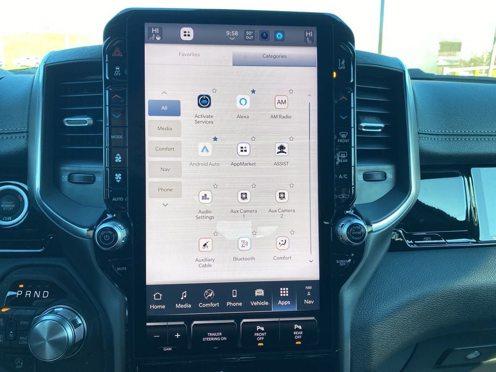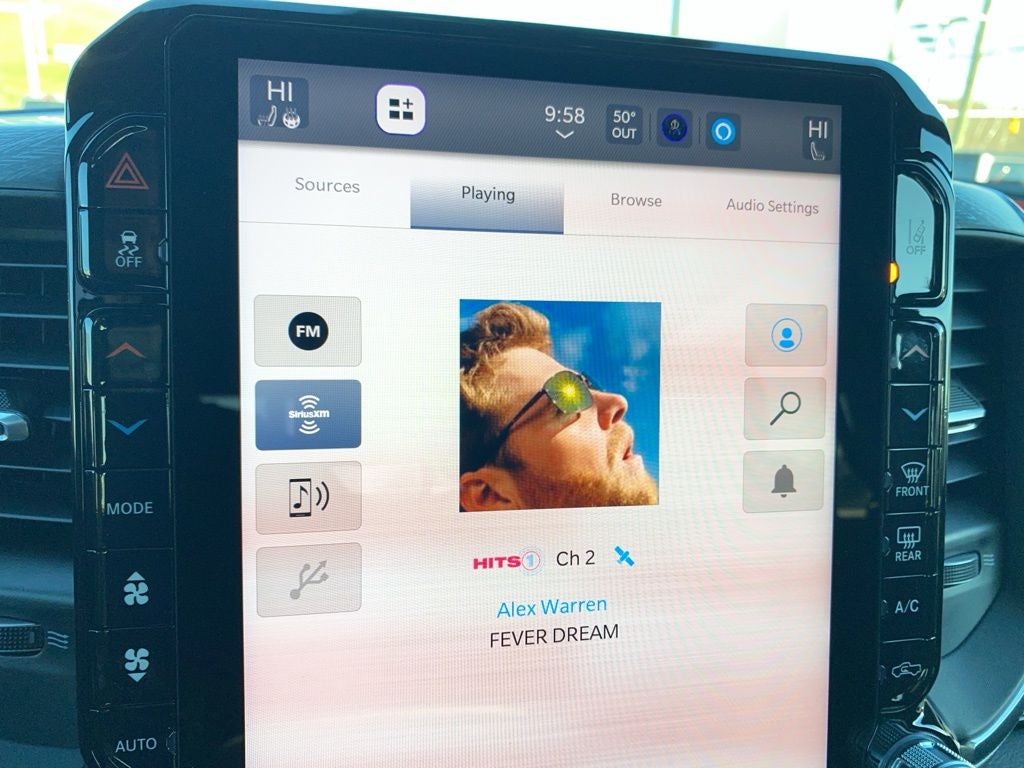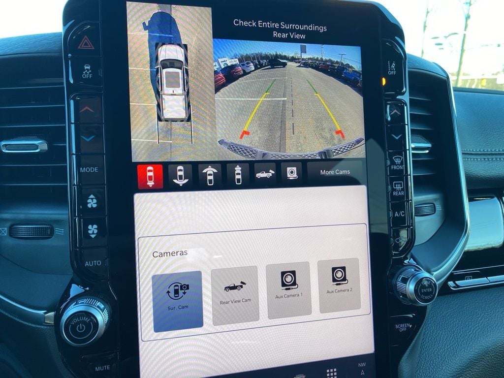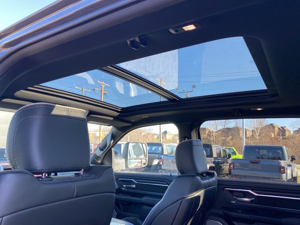 Advanced Safety Group II (12-Way/1-Way Trailer Connector, Active Driving Assist System, Drowsy Driver Detection, Evasive Steer Assist, Exterior Mirrors Approach Lamps, Intersection Collision Assist System, Surround View Camera System, and Traffic Sign Recognition), Bed Utility Group (Exterior 115V AC Outlet, MOPAR 4 Adjustable Cargo Tie-Down Hooks, and MOPAR Spray in Bedliner), Laramie Level 2 Equipment Group (14.4 Touchscreen Display, 4G LTE Wi-Fi Hot Spot, Cluster 12 TFT Color Display, Connected Travel and Traffic Services, Connectivity - US/Canada, Front Passenger Interactive Display, GPS Navigation, Harman/Kardon 19 Speaker Premium Sound, Integrated Center Stack Radio, Integrated Voice Command with Bluetooth®, Power Tailgate, Radio: Uconnect 5 Nav with 14.4 Display, Rain Sensitive Windshield Wipers, SiriusXM Radio Service, SiriusXM with 360L, and USB Host Flip), Night Edition (Accent Color Door Handles, Accent Color Premium Power Mirrors, Accent Color Tailgate Handle, Anti-Spin Differential Rear Axle, Auto Power-Folding Mirrors, Auto-Dimming Exterior Driver Mirror, Black Exterior Truck Badging, Black Headlamp Bezels, Black Interior Accents, Black Painted Exterior Mirrors Caps, Black Tail Lamp Bezels, Body Color Front Bumper, Body Color Rear Bumper with Step Pads, Convex Wide-Angle Exterior Mirror Insert, Dual Exhaust with Black Tips, Exterior Mirrors Courtesy Lamps, Exterior Mirrors with Heating Element, Exterior Mirrors with Memory, Exterior Mirrors with Supplemental Signals, Grille Surround 3 Black Texture 2 Black, Pirelli Brand Tires, Proximity Approach/Departure Lamps, RAM Grille Badge - Black, Sport Performance Hood, and Wheels: 22 x 9 Forged Aluminum), Quick Order Package 27H Laramie, Trailer Tow Group (Trailer Brake Control, Trailer Reverse Steering Control, and Trailer Tire Pressure Monitoring System), 10 Speakers, 240 Amp Alternator, 4-Wheel Disc Brakes, ABS brakes, Active Noise Control System, Adjustable pedals, Air Conditioning, Alloy wheels, AM/FM radio: SiriusXM with 360L, Apple CarPlay/Android Auto, Audio memory, Auto High-beam Headlights, Auto-dimming door mirrors, Auto-Dimming Exterior Passenger Mirror, Auto-dimming Rear-View mirror, Automatic temperature control, Black Exterior Mirrors, Black Power-Fold Trailer Tow Mirrors, Brake assist, Bumpers: chrome, Chrome Exterior Mirrors, Compass, Delay-off headlights, Dome Dual LED Reading Lamp, Driver door bin, Driver vanity mirror, Dual front impact airbags, Dual front side impact airbags, Dual-Pane Panoramic Sunroof, Electronic Stability Control, Forward and Reverse Utility Lights, Front anti-roll bar, Front Bucket Seats, Front Center Armrest w/Storage, Front dual zone A/C, Front fog lights, Front reading lights, Front wheel independent suspension, Fully automatic headlights, Garage door transmitter, Hands-Free Active Driving Assist System, Heated door mirrors, Heated front seats, Heated rear seats, Heated steering wheel, Illuminated entry, Leather steering wheel, Leather Trimmed Bucket Seats, LED Dome/Reading Lamp, Low tire pressure warning, Memory seat, Mirror Clearance/Running Lights, MOPAR Front and Rear Rubber Floor Mats, Multi-Function Tailgate, MyFlexCare Service Plan, Navigation System, Occupant sensing airbag, Off-Road Information Pages, Outside temperature display, Overhead airbag, Overhead console, Panic alarm, ParkView Rear Back-Up Camera, Passenger door bin, Passenger vanity mirror, Pedal memory, Power Deployable Running Boards, Power door mirrors, Power driver seat, Power passenger seat, Power steering, Power Telescoping Mirrors, Power windows, Power-Adjustable Convex Aux Mirrors, Radio data system, Radio: Uconnect 5 Navigation with 12.0 Display, RAM G Price includes: $3500 - 2026 National Retail Bonus Cash . Exp. 04/30/2026 $500 - 2026 National 2026 First Responder Bonus Cash . Exp