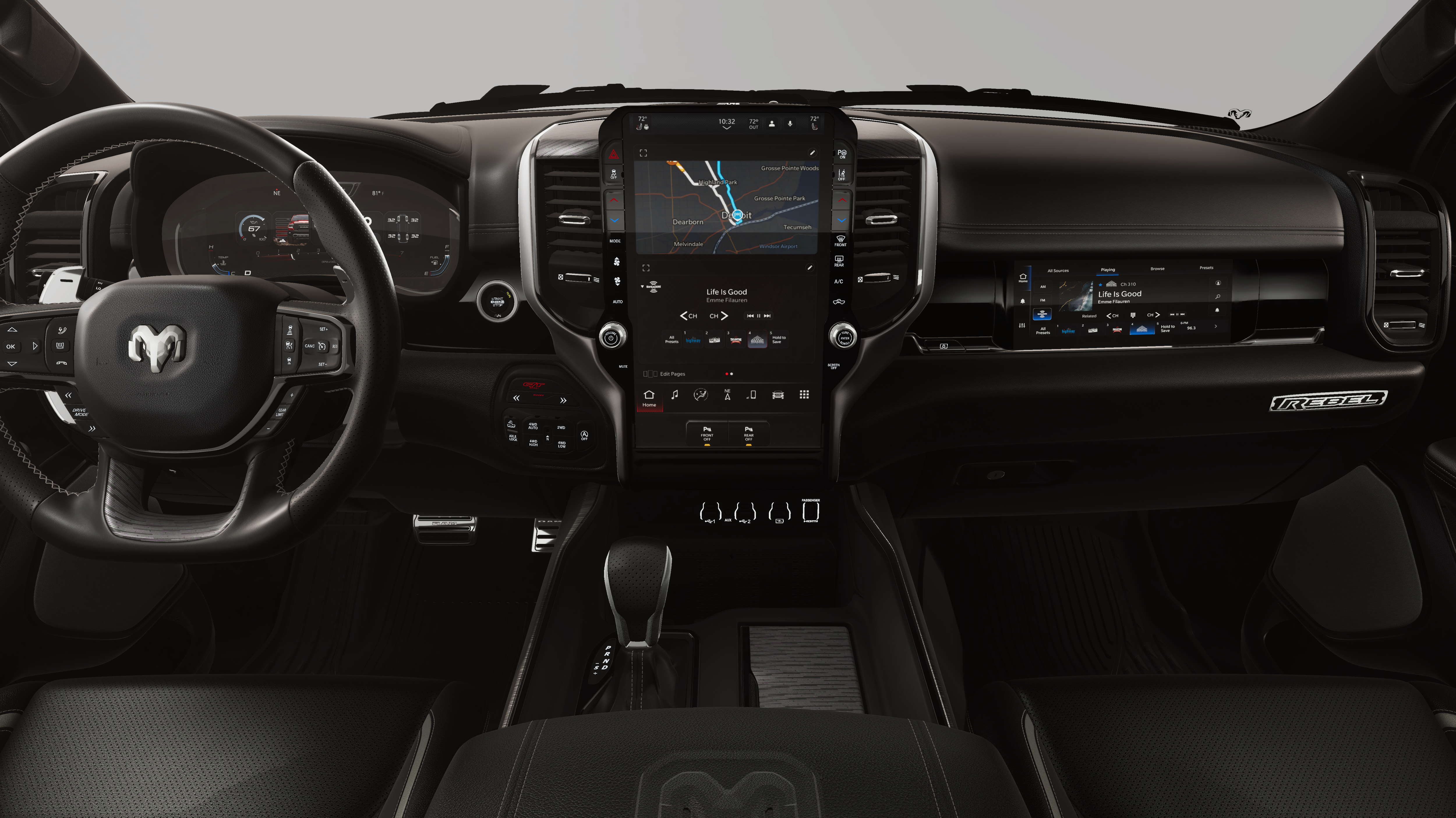 Bright White Clearcoat 2026 Ram 1500 Rebel 4WD 8-Speed Automatic 3.0L I6 10 Speakers, 115V Auxiliary Rear Power Outlet, 14.4 Touchscreen Display, 2-Door Passive Entry, Front Door Locks, 3.92 Rear Axle Ratio, 4 Way Front Headrests, 4-Wheel Disc Brakes, 4G LTE Wi-Fi Hot Spot, ABS brakes, Accent Color Door Handles, Accent Color Premium Power Mirrors, Accent Color Tailgate Handle, Active Noise Control System, Air Conditioning, Alloy wheels, AM/FM radio: SiriusXM with 360L, Apple CarPlay, Apple CarPlay/Android Auto, Auto High-beam Headlights, Auto Power-Folding Mirrors, Auto-Dimming Exterior Driver Mirror, Auto-dimming Rear-View mirror, Automatic temperature control, Bed Utility Group, Black Exterior Mirrors, Black Painted Exterior Mirrors Caps, Brake assist, Bucket Seats, Cloth/Vinyl Bucket Seats, Compass, Connected Travel and Traffic Services, Connectivity - US/Canada, Convex Wide-Angle Exterior Mirror Insert, Delay-off headlights, Disassociated Touchscreen Display, Driver door bin, Driver Seat Memory, Driver vanity mirror, Dual front impact airbags, Dual front side impact airbags, Dual Wireless Charging Pad, Electronic Stability Control, Exterior 115V AC Outlet, Exterior Mirrors Approach Lamps, Exterior Mirrors Courtesy Lamps, Exterior Mirrors with Heating Element, Exterior Mirrors with Memory, Exterior Mirrors with Supplemental Signals, Floor Console, Front anti-roll bar, Front Bucket Seats, Front Center Armrest w/Storage, Front dual zone A/C, Front fog lights, Front License Plate Bracket, Front Passenger Interactive Display, Front reading lights, Front Seat Back Map Pockets, Front wheel independent suspension, Full Length Upgraded Floor Console, Fully automatic headlights, G/T Decal, G/T Exhaust, G/T Package, Garage door transmitter, Global Telematics Box Module, Google Android Auto, GPS Antenna Input, GPS Navigation, GT Interior Theme, Harman/Kardon 19 Speaker Premium Sound, HD Radio, Heated door mirrors, Heated Front Seats, Heated front seats, Heated Second Row Seats, Heated Steering Wheel, Heated steering wheel, Illuminated entry, Integrated Center Stack Radio, Integrated Voice Command with Bluetooth®, Leather steering wheel, Leather Wrapped Shift Knob, Leather-Wrapped Steering Wheel, Leather/Vinyl Bucket Seats, Low tire pressure warning, Manual Folding Exterior Mirrors, Media Hub with 2 Charge Only USBs, MOPAR 4 Adjustable Cargo Tie-Down Hooks, Mopar Black Tubular Side Steps, MOPAR Bright Pedal Kit, MOPAR Spray in Bedliner, MyFlexCare Service Plan, Navigation System, Occupant sensing airbag, Off-Road Information Pages, Outside temperature display, Overhead airbag, Overhead console, Panic alarm, ParkView Rear Back-Up Camera, Passenger door bin, Passenger vanity mirror, Performance Pages, Power 2-Way Driver Lumbar Adjust, Power 2-Way Passenger Lumbar Adjust, Power 4-Way Driver Lumbar Adjust, Power 4-Way Passenger Lumbar Adjust, Power Adjust 8-Way Driver Seat, Power Adjust 8-Way Front Passenger Seat, Power Adjustable Pedals with Memory, Power door mirrors, Power driver seat, Power steering, Power Tailgate, Power windows, Proximity Approach/Departure Lamps, Quick Order Package 21W Rebel, Radio data system, Radio: Uconnect 5 Nav with 14.4 Display, Radio: Uconnect 5 Navigation with 12.0 Display, Radio/Driver Seat/Mirrors/Pedals Memory, Rain Sensitive Windshield Wipers, Rear 60/40 Folding Seat, Rear 60/40 Folding Split Recline Seat, Rear anti-roll bar, Rear seat center armrest, Rear step bumper, Rear Window Defroster, Rebel Level 2 Equipment Group, Remote keyless entry, Security Alarm, SiriusXM Radio Service, SiriusXM with 360L, Smartphone as a Key Capable, Speed control, Split folding rear seat, Steering wheel mounted audio controls, Steering Wheel Mounted Shift Control, Tachometer, Telescoping steering wheel, Tilt steering wheel, Traction control, Trip computer, Under Seat Lightin Price includes: $3500 - 2026 National Retail Bonus Cash . Exp. 04/30/2026 $500 - 2026 National 2026 First Responder Bonus Cash . Exp. 01/04/2027