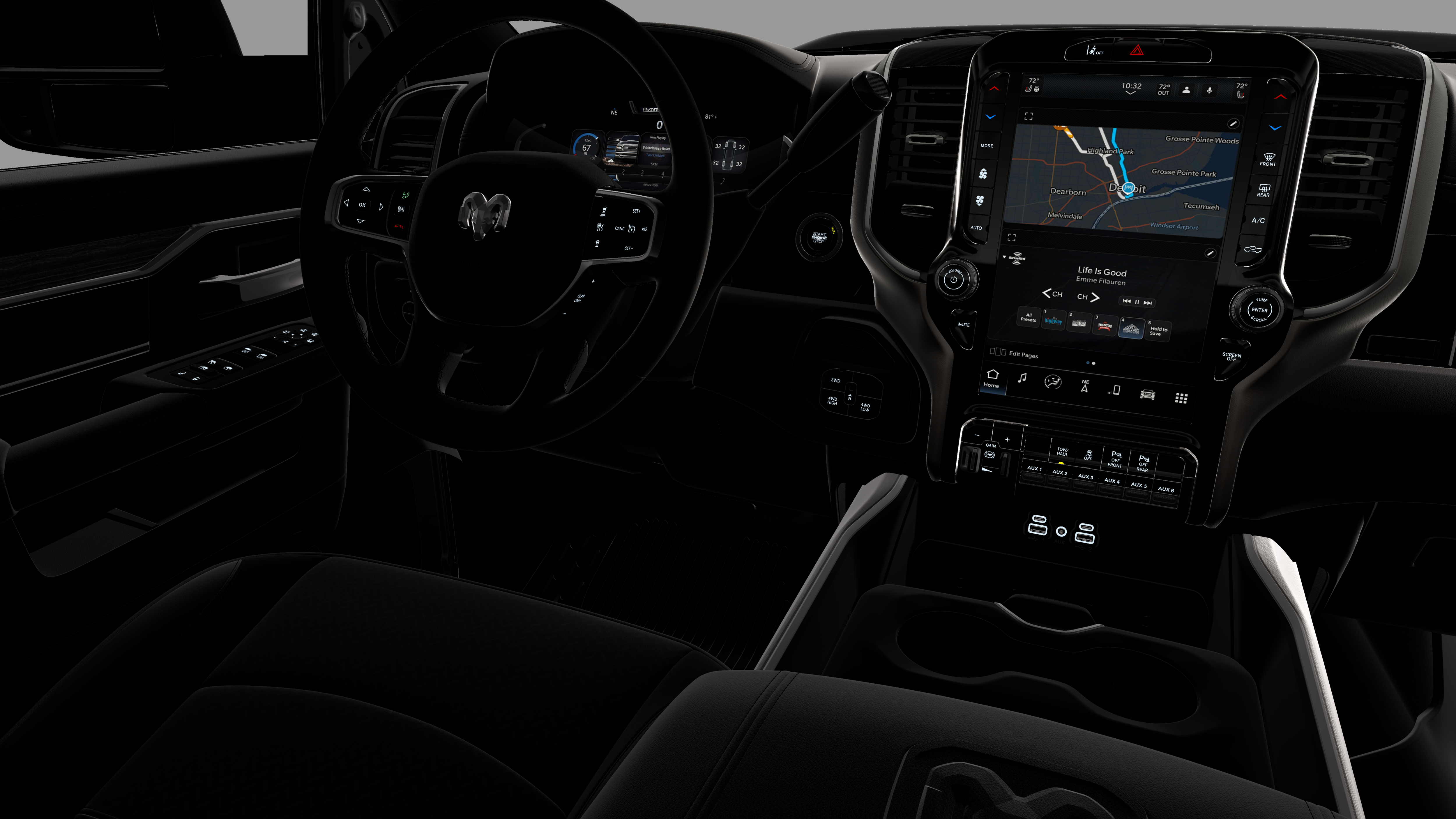 Diamond Black Crystal Pearlcoat 2026 Ram 2500 Laramie 4WD 8-Speed Automatic 6.4L V8 #1 Seat Foam Cushion, 10 Speakers, 115V Auxiliary Rear Power Outlet, 2 Way Rear Headrest Seat, 2nd Row in Floor Storage Bins, 3.73 Axle Ratio, 4 Way Front Headrests, 4-Wheel Disc Brakes, 4G LTE Wi-Fi Hot Spot, 5th Wheel/Gooseneck Towing Prep Group, ABS brakes, Active Lane Management System, Adaptive Steering System, Air Conditioning, Alexa Built-in, Alloy wheels, AM/FM radio: SiriusXM with 360L, Anti-Spin Differential Rear Axle, Apple CarPlay, Apple CarPlay/Android Auto, Auto Adjust in Reverse Exterior Mirrors, Auto Dim Exterior Mirror, Auto High Beam Headlamp Control, Auto Power-Folding Mirrors, Auto-Dimming Exterior Passenger Mirror, Auto-dimming Rear-View mirror, Automatic temperature control, Black Exterior Mirrors, Black Exterior Truck Badging, Black Wheel Center Hub, Body Color Grille-Surround, Brake assist, Bucket Seats, Bumpers: body-color, Center Stop Lamp with Cargo View Camera, Chrome Exterior Mirrors, Clearance Lamps, Compass, Connected Travel and Traffic Services, Connectivity - US/Canada, Dash Pass Thru Wire Circuits, Delay-off headlights, Disassociated Touchscreen Display, Driver door bin, Driver vanity mirror, Drowsy Driver Detection, Dual front impact airbags, Dual front side impact airbags, Dual Wireless Charging Pad, Electronic Stability Control, Emergency Vehicle Alert System (EVAS), Exterior Mirrors Courtesy Lamps, Exterior Mirrors with Heating Element, Exterior Mirrors with Memory, Exterior Mirrors with Supplemental Signals, Foam Bottle Insert (door Trim Panel), Folding Flat Load Floor Storage, For Details, Visit DriveUconnect.com, For More Info, Call 800-643-2112, Forward and Reverse Utility Lights, Front anti-roll bar, Front Center Armrest w/Storage, Front dual zone A/C, Front fog lights, Front License Plate Bracket, Front reading lights, Front Seat Back Map Pockets, Full Length Upgraded Floor Console, Fully automatic headlights, Garage door transmitter, Global Telematics Box Module, Gloss Black Grille Billets/Accents, Google Android Auto, GPS Antenna Input, GPS Navigation, HD Radio, Heated door mirrors, Heated Front Seats, Heated front seats, Heated Steering Wheel, Heated steering wheel, High Back Seats, Illuminated entry, Instrument Panel Mounted Auxiliary Switches, Integrated Voice Command with Bluetooth®, Laramie Level 1 Plus Equipment Group, Leather Trim 40/20/40 Bench Seat, Leather Trimmed Bucket Seats, LED Bed Lighting, Low tire pressure warning, Mirror Running Lights, MOPAR Deployable Bed Step, MOPAR Front and Rear Rubber Floor Mats, MOPAR Spray in Bedliner, MyFlexCare Service Plan, Navigation System, Night Edition, Occupant sensing airbag, Off-Road Info Pages, Outside temperature display, Overhead airbag, Overhead console, Painted Flat Wheel-to-Wheel Side Steps, Panic alarm, ParkView Rear Back-Up Camera, Passenger door bin, Passenger vanity mirror, Power 2-Way Driver Lumbar Adjust, Power 2-Way Passenger Lumbar Adjust, Power Adjust 8-Way Driver Seat, Power Adjust 8-Way Front Passenger Seat, Power Adjust Mirrors, Power Adjustable Pedals with Memory, Power door mirrors, Power driver seat, Power Heated Fold Telescopic Mirrors with Memory, Power passenger seat, Power steering, Power Sunroof, Power Telescoping Mirrors, Power windows, Power-Adjustable Convex Aux Mirrors, Quick Order Package 2UH Laramie, Radio data system, Radio: Uconnect 5 Navigation with 12.0 Display, Radio/Driver Seat/Mirrors/Pedals Memory, Rain Sensitive Windshield Wipers, Rear 60/40 Folding Seat, Rear anti-roll bar, Rear reading lights, Rear seat center armrest, Rear step bumper, Rear window defroster, Remote keyless entry, Remote Tailgate Release, Security system, Selectable Tire Fill Alert, SiriusXM Radio Service, SiriusXM with 360L, Speed control, Split folding rear seat, Sport Performance Hood, Steering wh Price includes: $1000 - 2026 National Bonus Cash . Exp. 04/30/2026 $500 - 2026 National 2026 First Responder Bonus Cash . Exp. 01/04/2027