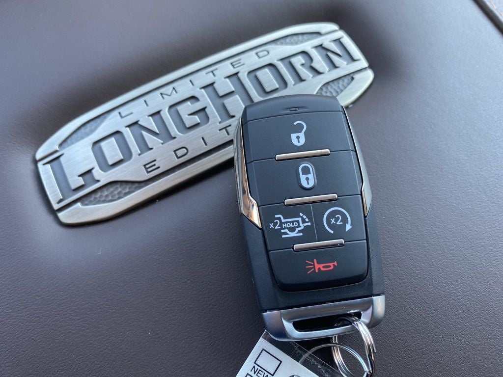 Chrome Bumper Package (Bright Front Bumper and Bright Rear Bumper), Longhorn Level 1 Equipment Group (Active Lane Management System, Adaptive Steering System, Anti-Spin Differential Rear Axle, Center Stop Lamp with Cargo View Camera, Digital Rearview Mirror, Drowsy Driver Detection, LED Bed Lighting, MOPAR Spray in Bedliner, Power Deployable Running Boards, Surround View Camera System, Traffic Sign Recognition, Trailer Reverse Guidance, and Trailer Tire Pressure Monitoring System), Off Road Package (Front Performance Tuned Shock Absorbers, Hill Assist, and Rear Performance Tuned Shock Absorbers), Quick Order Package 24K Longhorn (Front Seat Back Map Pockets, I/P Aluminum Litho Bezels with Real Wood #1, Longhorn Badge, Longhorn Instrument Cluster Theme 3, Luxury Front and Rear Floor Mats, Premium Door Trim Panel, Premium Filigree Leather Seats, Ventilated Front Seats, and Warm Chrome Key Fob), Tow Technology Plus Group (Digital 3.0 Rear View Auto Dimming Mirror and Trailer Reverse Steering Control), 17 Speakers, 4-Wheel Disc Brakes, 5th Wheel/Gooseneck Towing Prep Group, ABS brakes, Adjustable pedals, Air Conditioning, Alloy wheels, AM/FM radio: SiriusXM with 360L, Apple CarPlay/Android Auto, Audio memory, Auto High-beam Headlights, Auto-dimming door mirrors, Auto-dimming Rear-View mirror, Automatic temperature control, Black Wheel Center Hub, Bodyside moldings, Brake assist, Bumpers: body-color, Clearance Lamps, Compass, Delay-off headlights, Driver door bin, Driver vanity mirror, Dual front impact airbags, Dual front side impact airbags, Electronic Stability Control, Front anti-roll bar, Front Bucket Seats, Front Center Armrest w/Storage, Front dual zone A/C, Front fog lights, Front reading lights, Fully automatic headlights, Garage door transmitter, Genuine wood console insert, Genuine wood dashboard insert, Genuine wood door panel insert, harman/kardon® Speakers, Heated door mirrors, Heated front seats, Heated rear seats, Heated steering wheel, Illuminated entry, Leather steering wheel, Low tire pressure warning, Memory seat, Navigation System, Occupant sensing airbag, Outside temperature display, Overhead airbag, Overhead console, Panic alarm, ParkView Rear Back-Up Camera, Passenger door bin, Passenger vanity mirror, Pedal memory, Pickup Box, Power door mirrors, Power driver seat, Power passenger seat, Power steering, Power Sunroof, Power windows, Radio data system, Radio: Uconnect 5 Nav with 14.4 Display, Rain sensing wipers, Rear anti-roll bar, Rear reading lights, Rear seat center armrest, Rear step bumper, Rear window defroster, Remote keyless entry, Security system, Speed control, Split folding rear seat, Steering wheel mounted audio controls, Tachometer, Tilt steering wheel, Traction control, Trip computer, Turn signal indicator mirrors, Ultra Premium Leather Seats, Variably intermittent wipers, Vendor Painted Cargo Box, Vendor Painted Cargo Box Tracking, Ventilated front seats, Voltmeter, and Wheels: 20 x 8.0 Diamond Cut Aluminum with Black Pt Pockets. Price includes: $1000 - 2026 National Bonus Cash . Exp. 02/02/2026