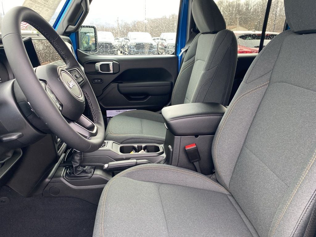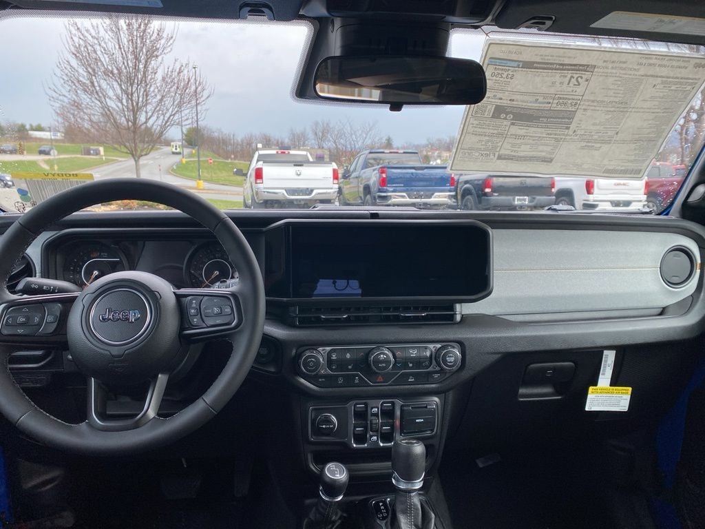Hydro Blue Pearl Coat 2026 Jeep Wrangler Sport S 4WD 8-Speed Automatic 2.0L I4 DOHC 12.3 Touchscreen Display, 2-Door Passive Entry, Front Door Locks, 3.45 Overall Top Gear Ratio, 4-Wheel Disc Brakes, 4G LTE Wi-Fi Hot Spot, 8 Speakers, ABS brakes, Advanced Brake Assist, Air Conditioning, Air Conditioning with Auto Temp Control, Air Filtering, AM/FM radio: SiriusXM with 360L, Apple CarPlay, Apple CarPlay/Android Auto, Automatic Headlamps, Aux Battery, Black 3-Piece Hard Top, Brake assist, Cluster 7.0 TFT Color Display, Compass, Connectivity - US/Canada, Convenience Group, Corning Gorilla Glass, Deep Tint Sunscreen Windows, Delay-off headlights, Driver door bin, Driver vanity mirror, Dual front impact airbags, Dual front side impact airbags, Electronic Stability Control, Emergency/Assistance Call, Enhanced Adaptive Cruise Control, For More Info, Call 800-643-2112, Freedom Panel Storage Bag, Front anti-roll bar, Front Bucket Seats, Front Center Armrest w/Storage, Front fog lights, Front LED Fog Lamps, Front reading lights, Full Speed Forward Collision Warning Plus, Google Android Auto, Heated Front Seats, Heated Steering Wheel, Illuminated entry, Integrated Center Stack Radio, Integrated roll-over protection, LED Headlamp and Fog Lamp Group, LED Premium Reflector Headlamps, Low tire pressure warning, MOPAR All-Weather Floor Mats, Mopar Black Tubular Side Steps, Myflexcare Service Plan, No Soft Top, Non-Lock Fuel Cap Without Discriminator, Normal Duty Suspension, Occupant sensing airbag, Outside temperature display, Overhead airbag, Panic alarm, ParkView Rear Back-Up Camera, Passenger door bin, Passenger vanity mirror, Power Heated Mirrors, Power steering, Power windows, Premium Wrapped Steering Wheel, Quick Order Package 22S Sport S, Radio data system, Radio: Uconnect 5 with 12.3 Display, Rear anti-roll bar, Rear reading lights, Rear Window Defroster, Rear Window Wiper/Washer, Remote keyless entry, Security Alarm, SiriusXM Radio Service, SiriusXM with 360L, Speed control, Split folding rear seat, Steering wheel mounted audio controls, Stop-Start Dual Battery System, Sun Visors with Illuminated Vanity Mirrors, Tachometer, Telescoping steering wheel, Tilt steering wheel, Traction control, Trip computer, Universal Garage Door Opener, Variably intermittent wipers, Wheels: 17 x 7.5 Black Steel Styled, Wheels: 17 x 7.5 Gray.