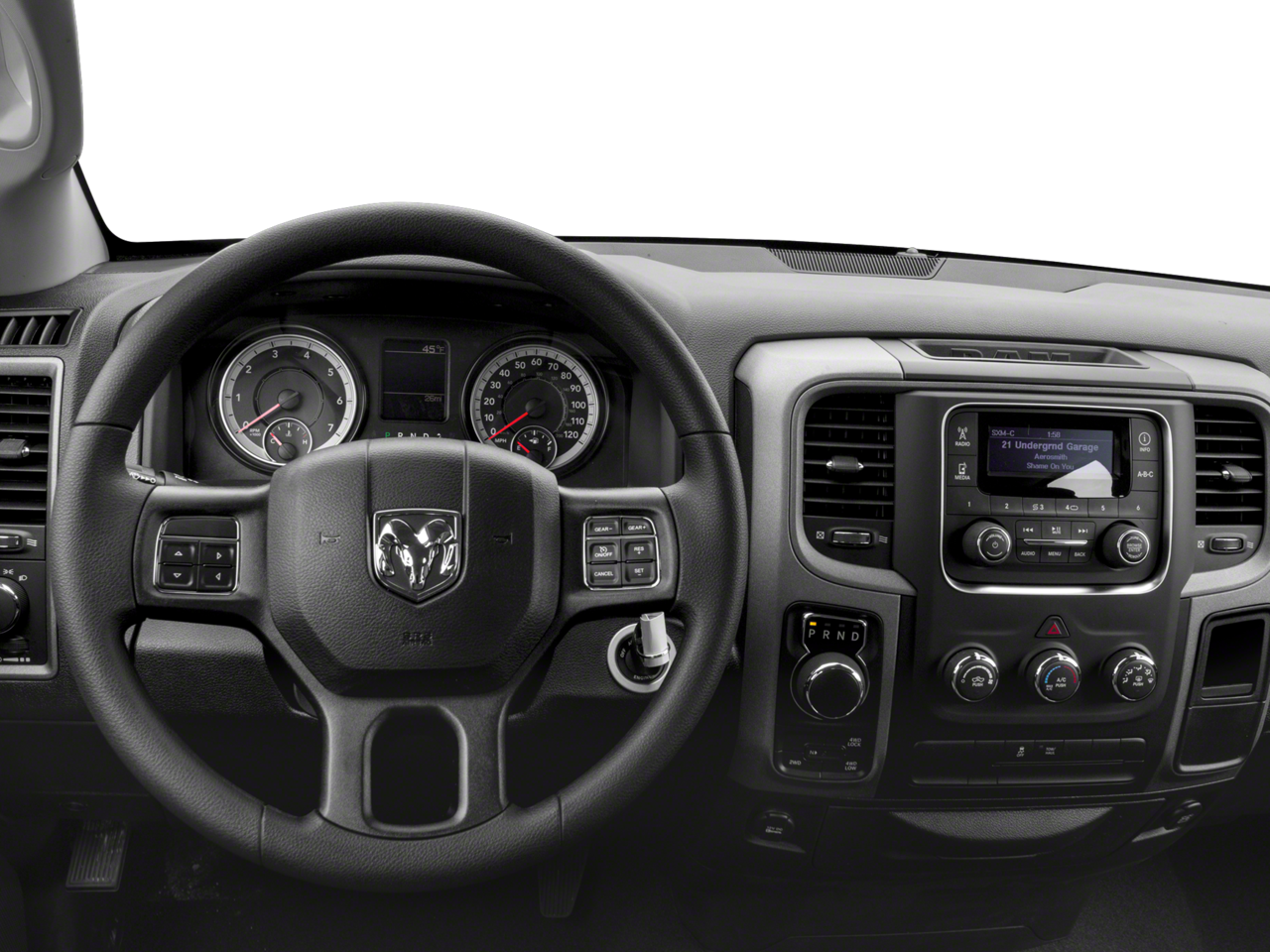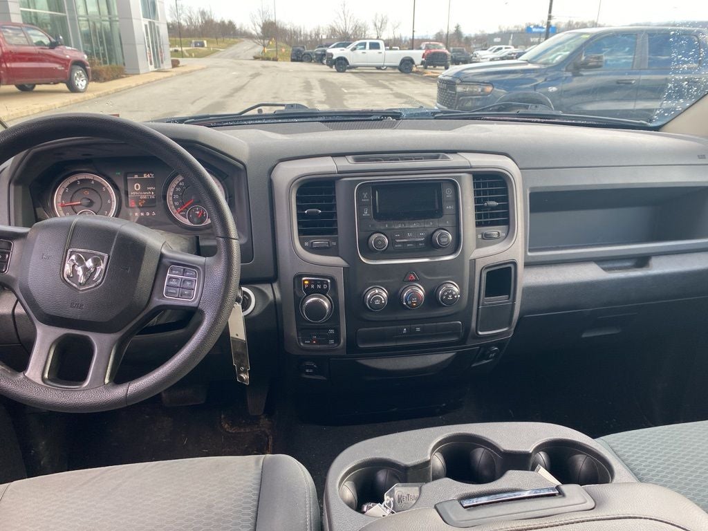 1-Year SiriusXM Radio Service, 17 x 7 Aluminum Wheels, 17 x 7 Steel Wheels, 3.21 Rear Axle Ratio, 4-Wheel Disc Brakes, 40/20/40 Split Bench Seat, 6 Speakers, ABS brakes, Active Grille Shutters, Air Conditioning, AM/FM radio, Audio Jack Input for Mobile Devices, Black Exterior Mirrors, Body Color Front Fascia, Body Color Grille, Body Color Rear Bumper w/Step Pads, Brake assist, Carpet Floor Covering, Center Hub, Cloth 40/20/40 Bench Seat, Delay-off headlights, Delete Class IV Receiver Hitch, Delete Spray In Bedliner, Driver door bin, Dual front impact airbags, Dual front side impact airbags, Electronic Shift, Electronic Stability Control, Exterior Mirrors w/Heating Element, Fog Lamps, For More Info, Call 800-643-2112, Front & Rear Floor Mats, Front anti-roll bar, Front Armrest w/3 Cupholders, Front Center Armrest, Front wheel independent suspension, Fully automatic headlights, Heated door mirrors, Heavy Duty Vinyl 40/20/40 Split Bench Seat, Low tire pressure warning, Media Hub (USB, AUX), No Satellite Coverage w/AK/HI/PR/VI, Occupant sensing airbag, Overhead airbag, Passenger door bin, Popular Equipment Group, Power door mirrors, Power steering, Power windows, Quick Order Package 22J Express, Radio data system, Radio: 3.0, Ram 1500 Express, Rear anti-roll bar, Rear Folding Seat, Rear step bumper, Remote Keyless Entry w/All-Secure, Remote USB Port, Rotary Shifter-Black, SiriusXM Satellite Radio, Speed control, Tachometer, Tilt steering wheel, Tip Start, Traction control, Variably intermittent wipers, Voltmeter.