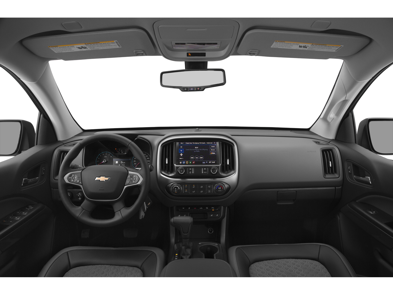 3.42 Rear Axle Ratio, 4-Wheel Disc Brakes, 6 Speakers, 6-Speaker Audio System Feature, ABS brakes, Air Conditioning, All-Weather Floor Mats, Alloy wheels, AM/FM radio: SiriusXM, Apple CarPlay/Android Auto, Auto-dimming Rear-View mirror, Automatic temperature control, Black Spray-On Bedliner w/Chevrolet Logo, Bumpers: body-color, Cloth/Leatherette Seat Trim, Compass, Delay-off headlights, Driver 6-Way Power Seat Adjuster, Driver door bin, Driver vanity mirror, Dual front impact airbags, Dual front side impact airbags, Electronic Stability Control, Exterior Parking Camera Rear, Forward Collision Alert, Front anti-roll bar, Front Bucket Seats, Front Center Armrest, Front fog lights, Front reading lights, Front wheel independent suspension, Fully automatic headlights, HD Radio, Heated door mirrors, Heated Driver & Front Passenger Seats, Heated front seats, Heated steering wheel, Heavy-Duty Trailering Package, Hitch Guidance, Illuminated entry, Integrated Trailer Brake Controller, Lane Departure Warning System, Low tire pressure warning, Occupant sensing airbag, Outside temperature display, Overhead airbag, Overhead console, Panic alarm, Passenger door bin, Passenger vanity mirror, Power door mirrors, Power Driver Lumbar Control Seat Adjuster, Power driver seat, Power steering, Power windows, Preferred Equipment Group 2Z7, Premium audio system: Chevrolet Infotainment 3 Plus, Radio data system, Radio: Chevrolet Infotainment 3 Plus System, Rear reading lights, Rear seat center armrest, Rear step bumper, Rear window defroster, Remote keyless entry, Safety Package, Security system, SiriusXM Radio, Speed control, Speed-sensing steering, Steering wheel mounted audio controls, Tachometer, Telescoping steering wheel, Tilt steering wheel, Tow/Haul Mode, Traction control, Trip computer, UltraSonic Rear Park Assist, Variably intermittent wipers, Wheels: 17 x 8 Bright Machined Aluminum.