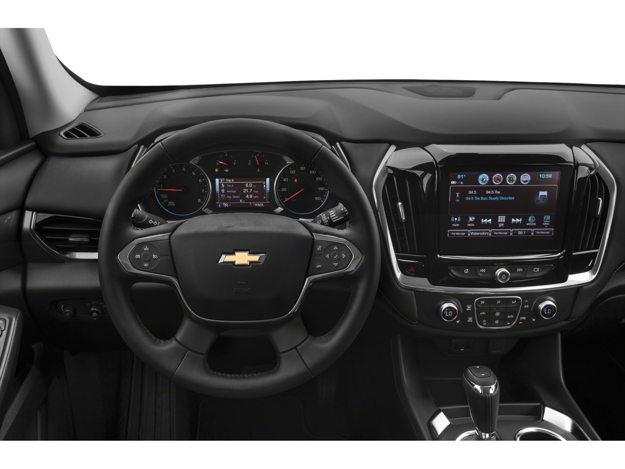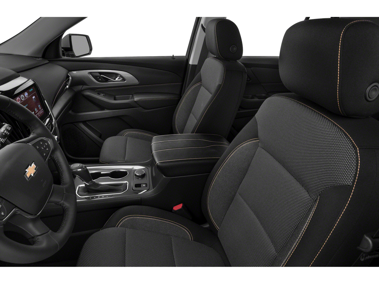 1st & 2nd Row All-Weather Floor Liner (LPO), 3.49 Axle Ratio, 3rd Row All-Weather Floor Liner (LPO), 3rd row seats: split-bench, 4-Wheel Disc Brakes, 6 Speakers, 7-Passenger Seating (2-2-3 Seating Configuration), ABS brakes, Air Conditioning, Alloy wheels, AM/FM radio: SiriusXM, Apple CarPlay/Android Auto, Automatic Emergency Braking, Automatic Heated Steering Wheel, Automatic temperature control, Brake assist, Bright Wheel Locks (LPO), Bumpers: body-color, Chevy Safety Assist, Compass, Delay-off headlights, Driver door bin, Driver vanity mirror, Dual front impact airbags, Dual front side impact airbags, Electronic Stability Control, Emergency communication system: OnStar and Chevrolet connected services capable, Floor Liner Package (LPO), Following Distance Indicator, Forward Collision Alert, Four wheel independent suspension, Front anti-roll bar, Front Bucket Seats, Front Center Armrest, Front dual zone A/C, Front fog lights, Front Pedestrian Braking, Front reading lights, Fully automatic headlights, Garage door transmitter, Heated door mirrors, Heated front seats, Heavy-Duty Cooling System, High-Intensity Discharge Headlights, Hitch Guidance w/Hitch View, Illuminated entry, Integrated Cargo Liner (LPO), IntelliBeam Auto High Beam Control Headlamps, Lane Keep Assist w/Lane Departure Warning, Leather steering wheel, Low tire pressure warning, Occupant sensing airbag, Outside temperature display, Overhead airbag, Overhead console, Panic alarm, Passenger door bin, Passenger vanity mirror, Power door mirrors, Power driver seat, Power Liftgate, Power steering, Power windows, Preferred Equipment Group 1LT, Premium Cloth Seat Trim, Radio data system, Radio: Chevrolet Infotainment 3 Plus System, Rear air conditioning, Rear anti-roll bar, Rear reading lights, Rear window defroster, Rear window wiper, Remote keyless entry, Roof rack: rails only, Security system, SiriusXM w/360L, Speed control, Speed-sensing steering, Spoiler, Steering wheel mounted audio controls, Tachometer, Telescoping steering wheel, Tilt steering wheel, Traction control, Trailering Assist Guidelines, Trailering Equipment, Trip computer, Turn signal indicator mirrors, Variably intermittent wipers, Voltmeter, Wheels: 18 Bright Silver Painted Aluminum.