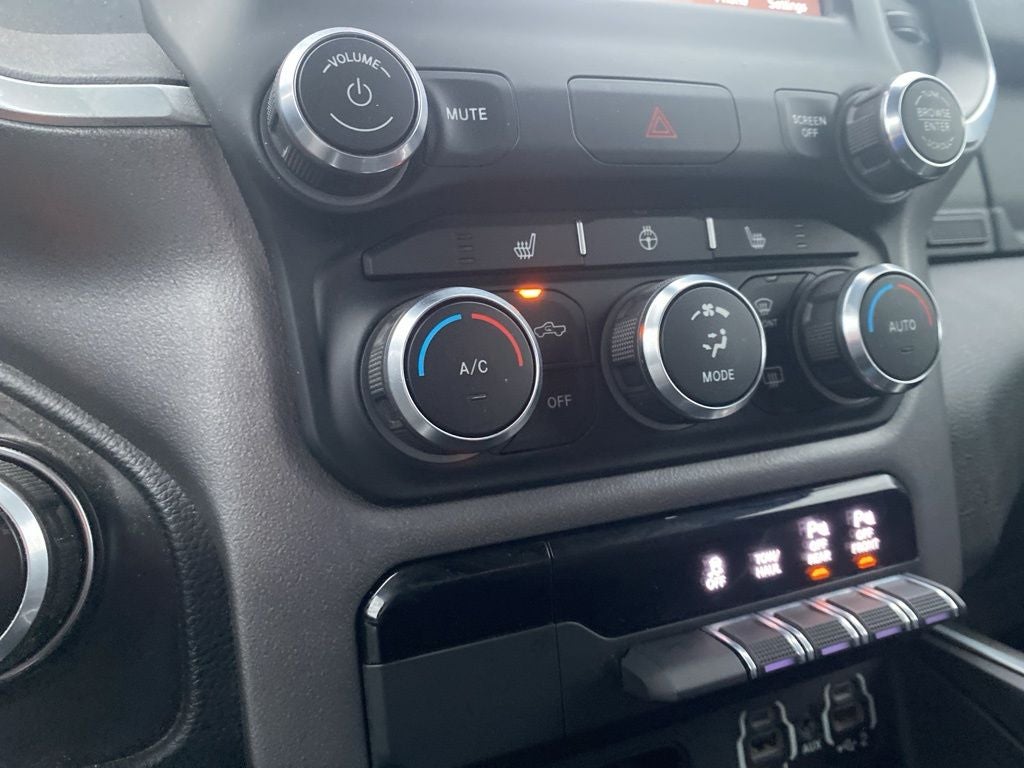 115V Auxiliary Power Outlet, 115V Auxiliary Rear Power Outlet, 26 Gal. Fuel Tank (Replace 23 Gal.), 2nd Row In Floor Storage Bins, 3 Rear Seat Head Restraints, 3.21 Rear Axle Ratio, 4 Way Front Headrests, 4-Wheel Disc Brakes, 40/20/40 Split Bench Seat, 400W Inverter, 48V Belt Starter Generator, 6 Speakers, ABS brakes, Accent Color Premium Power Mirrors, Air Conditioning, Air Conditioning ATC w/Dual Zone Control, Alloy wheels, AM/FM radio, Anti-Spin Differential Rear Axle, Auto-Dimming Exterior Driver Mirror, Auto-Dimming Rear-View Mirror, Big Horn Badge, Big Horn Level 2 Equipment Group, Black Exterior Mirrors, Black Exterior Truck Badging, Black Headlamp Bezels, Black Interior Accents, Black Painted Exterior Mirrors Caps, Black Premium Power Mirrors, Body Color Front Bumper, Body Color Rear Bumper w/Step Pads, Brake assist, Bucket Seats, Bumpers: chrome, Center Console Parts Module, Class IV Receiver Hitch, Cloth Bench Seat, Cluster 7.0 TFT Color Display, Compass, Delay-off headlights, Deluxe Cloth Bucket Seats, Driver door bin, Dual Exhaust w/Black Tips, Dual front impact airbags, Dual front side impact airbags, Electronic Stability Control, Exterior Mirrors Courtesy Lamps, Exterior Mirrors w/Memory, Exterior Mirrors w/Supplemental Signals, Foam Bottle Insert (Door Trim Panel), For More Info, Call 800-643-2112, Front anti-roll bar, Front Center Armrest w/Storage, Front fog lights, Front License Plate Bracket, Front reading lights, Front Seat Back Map Pockets, Front wheel independent suspension, Full Length Floor Console, Fully automatic headlights, Glove Box Lamp, GPS Antenna Input, Heated door mirrors, Heated Front Seats, Heated Steering Wheel, Illuminated entry, Integrated Voice Command w/Bluetooth®, Leather steering wheel, Low tire pressure warning, Manual Adjust 4-Way Front Passenger Seat, Media Hub w/2 Charge Only USBs, MOPAR Front & Rear Rubber Floor Mats, Night Edition, Occupant sensing airbag, Outside temperature display, Overhead airbag, Overhead console, Panic alarm, ParkSense Front/Rear Park Assist w/Stop, ParkView Rear Back-Up Camera, Passenger door bin, Passenger vanity mirror, Power 4-Way Driver Lumbar Adjust, Power 8-Way Driver Seat, Power Adjustable Pedals, Power door mirrors, Power steering, Power windows, Power-Folding Mirrors, Quick Order Package 27Z Big Horn, Radio data system, Radio: Uconnect 3 w/5 Display, Radio: Uconnect 4 w/8.4 Display, Rear 60/40 Folding Seat, Rear anti-roll bar, Rear Dome w/On/Off Switch Lamp, Rear Power Sliding Window, Rear seat center armrest, Rear step bumper, Rear Window Defroster, Remote keyless entry, Remote Start System, Security Alarm, SiriusXM Radio Service, Speed control, Split folding rear seat, Steering wheel mounted audio controls, Sun Visors w/Illuminated Vanity Mirrors, Tachometer, Telescoping steering wheel, Tilt steering wheel, Traction control, Trip computer, Universal Garage Door Opener, Variably intermittent wipers, Voltmeter, Wheels: 18 x 8 Cast-Aluminum Painted, Wheels: 20 x 9.0 Premium Paint/Polished.
