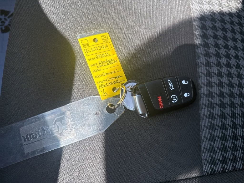 Priced below KBB Fair Purchase Price!Clean CARFAX. CARFAX One-Owner.Certification Program Details: For vehicles less than 10 model years old with fewer than 100,000 miles, this includes a 12-month/12,000-mile limited bumper-to-bumper warranty. Vehicle exchange: A 10-day or 100-mile window for exchanging the vehicle if you are not satisfied with your purchase. Roadside assistance: 24-hour roadside assistance for services like jump-starts, fuel delivery, and flat tire changes.Go Mango 2022 Dodge Challenger R/T Scat Pack RWD 8-Speed Automatic SRT HEMI 6.4L V8 MDSCarBravo with the 12 month 12,000 mile warranty Certified, 1-Yr SiriusXM Guardian Trial, 4-Wheel Disc Brakes, 506 Watt Amplifier, 6 Speakers, 9 Amplified Speakers w/Subwoofer, ABS brakes, Air Conditioning, Alloy wheels, Alpine Audio Group w/Subwoofer, AM/FM radio: SiriusXM, Anti-whiplash front head restraints, Apple CarPlay, Apple CarPlay/Android Auto, Auto-dimming Rear-View mirror, Automatic temperature control, Bee Fender Badge, Brake assist, Bumpers: body-color, Compass, Compass Gauge, Dash Plaque, Delay-off headlights, Driver door bin, Driver vanity mirror, Dual front impact airbags, Dual front side impact airbags, Electronic Stability Control, Emergency communication system: SiriusXM Guardian, For Details, Visit DriveUconnect.com, Four wheel independent suspension, Front anti-roll bar, Front Bucket Seats, Front Center Armrest, Front dual zone A/C, Front fog lights, Front reading lights, Fully automatic headlights, Garage door transmitter, Gloss Black I/P Cluster Trim Rings, Google Android Auto, GPS Antenna Input, Heated door mirrors, Heated front seats, Heated steering wheel, Illuminated entry, Integrated Center Stack Radio, Integrated Voice Command w/Bluetooth®, Leather Shift Knob, Low tire pressure warning, Media Hub (2 USB, AUX), MOPAR Shaker Hood, MOPAR Shaker Intake, Outside temperature display, Overhead airbag, Overhead console, Panic alarm, ParkView Rear Back-Up Camera, Passenger door bin, Passenger vanity mirror, Power door mirrors, Power driver seat, Power steering, Power Sunroof, Power windows, Quick Order Package 24G R/T Scat Pack, Radio data system, Radio: Uconnect 4C w/8.4 Display, Rear anti-roll bar, Rear reading lights, Rear seat center armrest, Rear window defroster, Red Brake Calipers, Remote keyless entry, Scat Pack Logo Houndstooth Seat, Security system, Shaker Mounted 392 HEMI Badge, Shaker Package, SiriusXM Satellite Radio, Speed control, Speed-sensing steering, Split folding rear seat, Spoiler, Sport steering wheel, Steering wheel mounted audio controls, Surround Sound, Tachometer, Telescoping steering wheel, Tilt steering wheel, Traction control, Trip computer, Underhood Shaker Decal, USB Host Flip, Variably intermittent wipers, Wheels: 20 x 9.0 Lo Gloss Granite Crystal, White Face Instrument Cluster.Recent Arrival! Odometer is 12032 miles below market average!