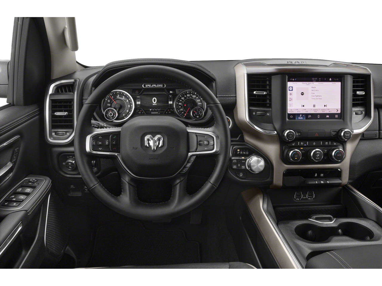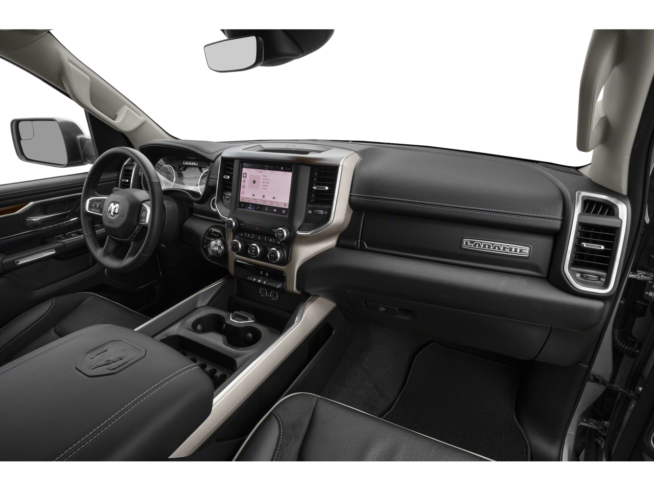 #1 Seat Foam Cushion, 10 Speakers, 2nd Row In Floor Storage Bins, 3 Rear Seat Head Restraints, 3.21 Rear Axle Ratio, 4 Way Front Headrests, 4-Wheel Disc Brakes, 48V Belt Starter Generator, 4G LTE Wi-Fi Hot Spot, 8.4 Touchscreen Display, ABS brakes, Adjustable pedals, Air Conditioning, Alloy wheels, AM/FM radio: SiriusXM, Anti-Spin Differential Rear Axle, Apple CarPlay, Apple CarPlay/Android Auto, Audio memory, Auto High Beam Headlamp Control, Auto-dimming door mirrors, Auto-Dimming Exterior Driver Mirror, Auto-dimming Rear-View mirror, Automatic temperature control, Blind Spot & Cross Path Detection, Brake assist, Bumpers: chrome, Chrome Exterior Mirrors, Compass, Connectivity - US/Canada, Convex Wide-Angle Mirror Insert, Delay-off headlights, Driver door bin, Driver Seat Memory, Driver vanity mirror, Dual front impact airbags, Dual front side impact airbags, Electronic Stability Control, Exterior Mirrors Courtesy Lamps, Exterior Mirrors w/Heating Element, Exterior Mirrors w/Memory, Exterior Mirrors w/Supplemental Signals, Foam Bottle Insert (Door Trim Panel), For Details, Visit DriveUconnect.com, Front anti-roll bar, Front Center Armrest w/Storage, Front dual zone A/C, Front fog lights, Front reading lights, Front Seat Back Map Pockets, Front wheel independent suspension, Fully automatic headlights, Garage door transmitter, Global Telematics Box Module (TBM), Google Android Auto, GPS Antenna Input, Heated door mirrors, Heated Front Seats, Heated front seats, Heated Steering Wheel, Heated steering wheel, Heavy-Duty Engine Cooling, Illuminated entry, Integrated Center Stack Radio, Laramie Level 1 Equipment Group (DISC), Leather steering wheel, Leather Trim 40/20/40 Bench Seat, Low tire pressure warning, Memory seat, MOPAR Front & Rear Rubber Floor Mats, Occupant sensing airbag, Outside temperature display, Overhead airbag, Overhead console, Panic alarm, ParkSense Front/Rear Park Assist w/Stop, ParkView Rear Back-Up Camera, Passenger door bin, Passenger vanity mirror, Pedal memory, Power 2-Way Driver Lumbar Adjust, Power 2-Way Passenger Lumbar Adjust, Power 8-Way Driver & Passenger Seats, Power door mirrors, Power driver seat, Power passenger seat, Power steering, Power windows, Power-Folding Mirrors, Quick Order Package 25H Laramie, Radio data system, Radio: Uconnect 5 W w/8.4 Display, Rain Sensitive Windshield Wipers, Rear 60/40 Folding Seat, Rear 60/40 Folding Split Recline Seat, Rear anti-roll bar, Rear seat center armrest, Rear step bumper, Rear Underseat Compartment Storage (DISC), Rear Wheelhouse Liners, Rear window defroster, Remote keyless entry, Remote Tailgate Release, Security system, SiriusXM Radio Service, Speed control, Split folding rear seat, Steering wheel mounted audio controls, Tachometer, Telescoping steering wheel, Tilt steering wheel, Traction control, Trip computer, Turn signal indicator mirrors, Variably intermittent wipers, Ventilated Front Seats, Ventilated front seats, Voltmeter, Wheels: 18 x 8 Aluminum Base Painted.