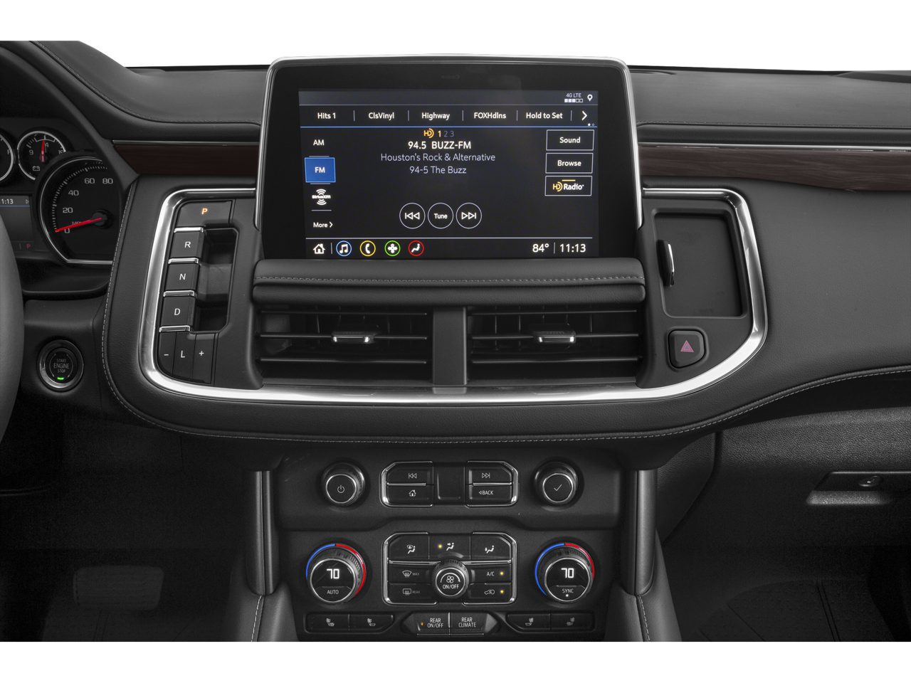 10-Way Power Driver & Passenger Seat Adjusters, 1st & 2nd Row Color-Keyed Carpeted Floor Mats, 2-Speed Active Electronic AutoTrac Transfer Case, 2nd Row Pwr Release 60/40 Split-Folding Bench Seat, 3.23 Rear Axle Ratio, 3rd Row 60/40 Power-Folding Split-Bench, 3rd row seats: split-bench, 4-Wheel Disc Brakes, 9 Speakers, ABS brakes, Air Conditioning, Alloy wheels, AM/FM radio: SiriusXM with 360L, Apple CarPlay/Android Auto, Auto High-beam Headlights, Auto-Dimming Inside Rear-View Mirror, Auto-dimming Rear-View mirror, Automatic temperature control, Black Tubular Assist Steps, Bose 9-Speaker Stereo Audio System Feature, Brake assist, Bright Front & Rear Door Sill Plates, Bumpers: body-color, Color-Keyed Carpeting Floor Covering, Compass, Delay-off headlights, Driver & Front Outboard Passenger Airbags, Driver Alert Package, Driver door bin, Driver vanity mirror, Dual front impact airbags, Dual front side impact airbags, Dual-Pane Power Panoramic Sunroof, Electronic Stability Control, Emergency communication system: OnStar and Chevrolet connected services capable, Enhanced Driver Information Center, Floor Console w/Storage Area, Four wheel independent suspension, Front anti-roll bar, Front Bucket Seats, Front Center Armrest, Front dual zone A/C, Front High-Approach Angle Fascia, Front reading lights, Fully automatic headlights, Garage door transmitter, Hands-Free Rear Power Programmable Liftgate, HD Surround Vision, Heated 2nd Row Outboard Seats, Heated door mirrors, Heated Driver & Front Passenger Seats, Heated front seats, Heated Steering Wheel, Heavy-Duty Air Filter, Hill Descent Control, Illuminated entry, Infotainment Display, Lane Change Alert w/Side Blind Zone Alert, Leather-Appointed Seating, LED Daytime Running Lamps, Low tire pressure warning, Luxury Package, Memory seat, Memory Settings, Memory Settings For Driver, Navigation System, Occupant sensing airbag, Outside Heated Power-Adjustable Mirrors, Outside temperature display, Overhead airbag, Overhead console, Panic alarm, Passenger door bin, Passenger vanity mirror, Power door mirrors, Power driver seat, Power Liftgate, Power passenger seat, Power Release 2nd Row Bucket Seats, Power steering, Power Tilt & Telescopic Steering Column, Power windows, Preferred Equipment Group 2Z7, Premium audio system: Chevrolet Infotainment 3 Premium, Premium Smooth Ride Suspension, Radio: Chevrolet Infotainment 3 Premium System, Rain sensing wipers, Rear air conditioning, Rear anti-roll bar, Rear Cross Traffic Alert, Rear Pedestrian Alert, Rear reading lights, Rear seat center armrest, Rear Seat Media System, Rear window defroster, Rear window wiper, Red Recovery Hooks, Remote keyless entry, Remote Start, Roof rack: rails only, Security system, SiriusXM Radio w/360L, Speed control, Speed-sensing steering, Split folding rear seat, Spoiler, Steering wheel mounted audio controls, Tachometer, Telescoping steering wheel, Tilt steering wheel, Traction control, Trip computer, Universal Home Remote, Variably intermittent wipers, Voltmeter, Wheels: 20 x 9 Machined Aluminum, Wireless Charging, Wrapped Steering Wheel.