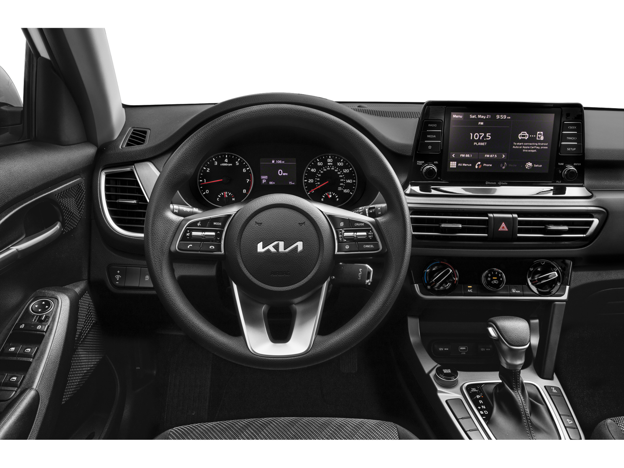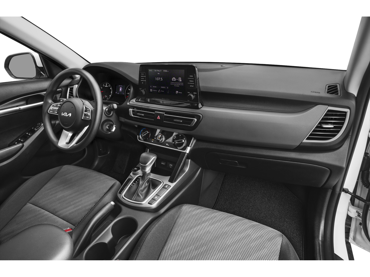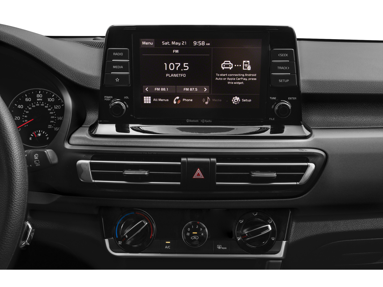Kia Certified Pre-Owned Certified, 4-Wheel Disc Brakes, 6 Speakers, 6.052 Axle Ratio, ABS brakes, Air Conditioning, Alloy wheels, AM/FM radio, Apple CarPlay & Android Auto, Auto High-beam Headlights, Brake assist, Bumpers: body-color, Cargo Mat, Carpet Floor Mats, Cloth Seat Trim, Delay-off headlights, Driver door bin, Driver vanity mirror, Dual front impact airbags, Dual front side impact airbags, Electronic Stability Control, Exterior Parking Camera Rear, Four wheel independent suspension, Front anti-roll bar, Front Bucket Seats, Front Center Armrest, Front reading lights, Fully automatic headlights, Illuminated entry, Low tire pressure warning, Mud Guards, Occupant sensing airbag, Outside temperature display, Overhead airbag, Overhead console, Panic alarm, Passenger door bin, Passenger vanity mirror, Power door mirrors, Power steering, Power windows, Radio: AM/FM/MP3 Display Audio, Rear window defroster, Rear window wiper, Remote keyless entry, Security system, Speed control, Speed-sensing steering, Split folding rear seat, Spoiler, Steering wheel mounted audio controls, Tachometer, Telescoping steering wheel, Tilt steering wheel, Traction control, Trip computer, Variably intermittent wipers, Wheels: 17 Alloy w/Dark Gray Finish.