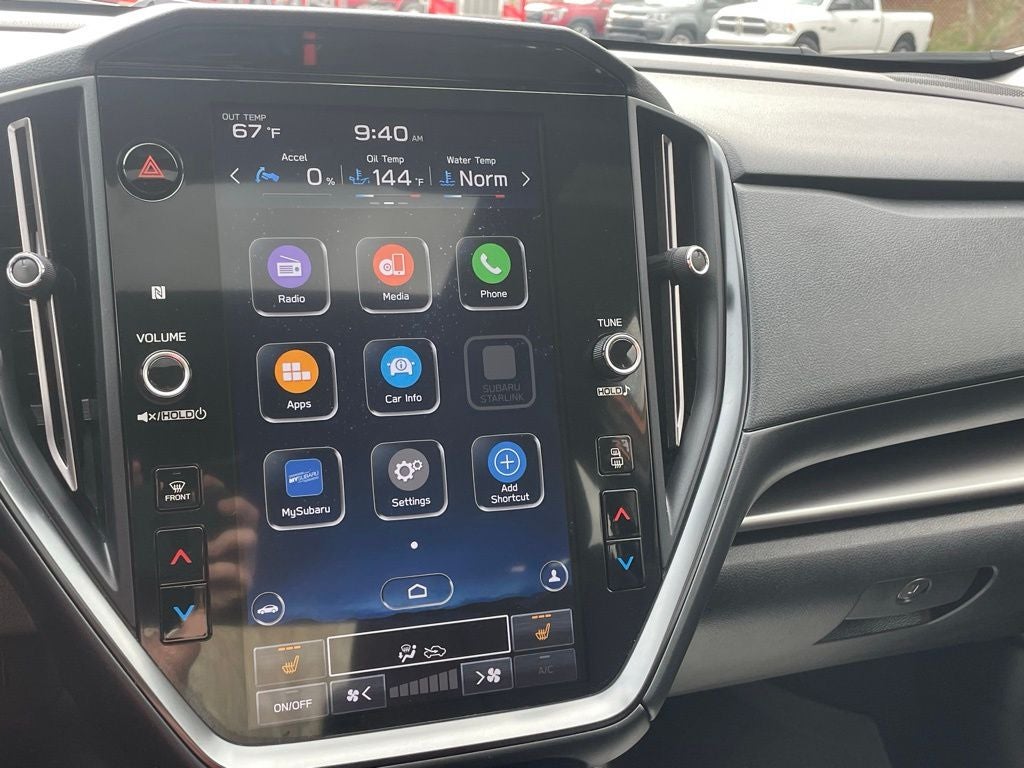 - Radio: Subaru STARLINK 11.6" Multimedia Plus Sys -inc: AM/FM stereo HD Radio, multi-touch gesture high resolution display screen, voice activated controls, Bluetooth® audio streaming connectivity, Bluetooth® hands-free phone connectivity, Bluetooth® hands-free SMS text messaging connectivity (applicable w/compatible cell phone), Near Field Communication (NFC), iPod control capability, rear-vision camera display, SiriusXM All Access radio (4 months free trial/subscription required after), SiriusXM Travel Link (4 months free trial/subscription required after), smartphone integration: Android Auto, Apple CarPlay, STARLINK cloud applications, 6 speakers and roof mounted audio, satellite and connected services antenna