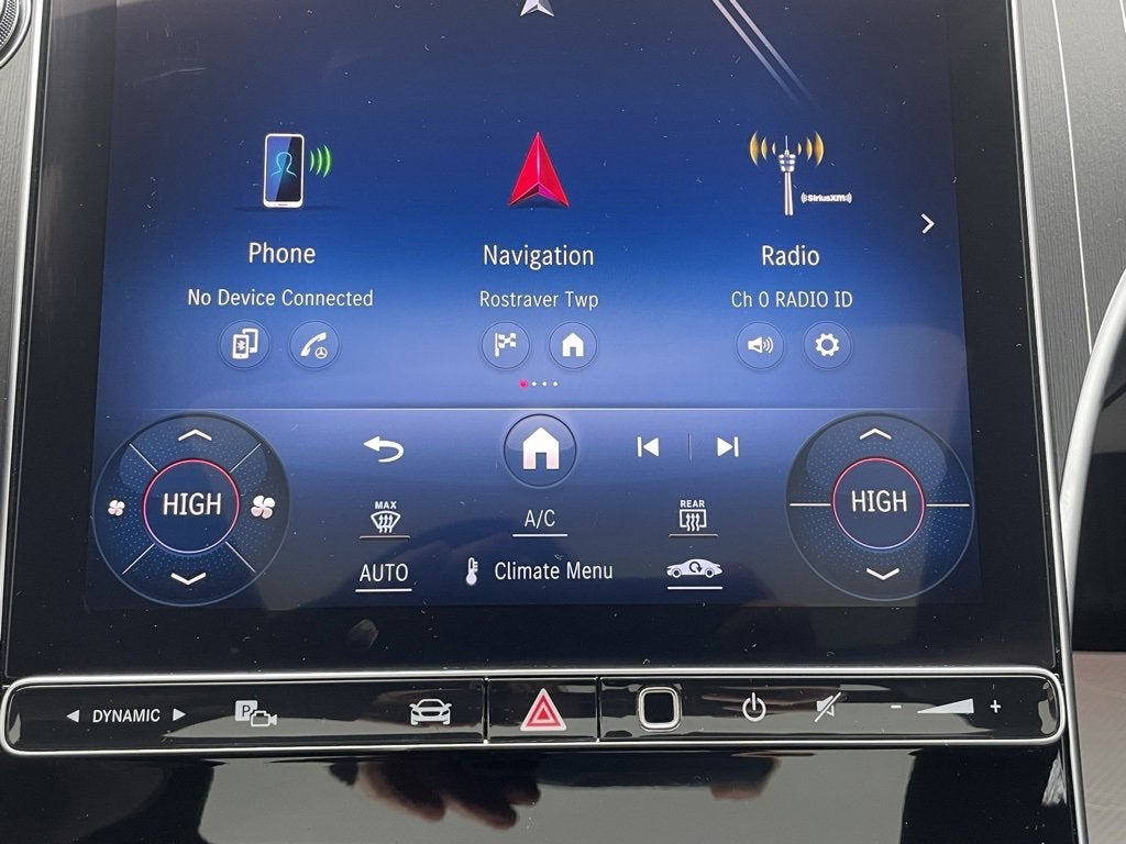 11.9 Center Touchscreen Display, 18 5-Spoke Wheels, 4-Wheel Disc Brakes, 5 Speakers, ABS brakes, Air Conditioning, Alloy wheels, AM/FM radio: SiriusXM, Anti-whiplash front head restraints, Apple CarPlay®/Android Auto®, Auto High-beam Headlights, Auto tilt-away steering wheel, Auto-dimming door mirrors, Auto-dimming Rear-View mirror, Automatic temperature control, Brake assist, Bumpers: body-color, Child-Seat-Sensing Airbag, Compass, Delay-off headlights, Driver door bin, Driver vanity mirror, Dual front impact airbags, Dual front side impact airbags, Electronic Stability Control, Emergency communication system: Mercedes-Benz Emergency Call Service, Exterior Parking Camera Rear, Four wheel independent suspension, Front anti-roll bar, Front Bucket Seats, Front Center Armrest, Front dual zone A/C, Front reading lights, Fully automatic headlights, Garage door transmitter: HomeLink, Genuine wood dashboard insert, Head restraints memory, Heated door mirrors, Heated front seats, Illuminated entry, Knee airbag, Leather steering wheel, Low tire pressure warning, Lumbar Support, MB-Tex Upholstery, Memory seat, Occupant sensing airbag, Outside temperature display, Overhead airbag, Overhead console, Panic alarm, Passenger door bin, Passenger vanity mirror, Power adjustable front head restraints, Power door mirrors, Power driver seat, Power Heated Front Seats w/Memory, Power moonroof, Power passenger seat, Power steering, Power windows, Premium audio system: MBUX, Radio data system, Radio: FrontBass 5-Speaker Audio System, Rain sensing wipers, Rear anti-roll bar, Rear fog lights, Rear reading lights, Rear seat center armrest, Rear window defroster, Remote keyless entry, Security system, SiriusXM Satellite Radio, Speed control, Speed-sensing steering, Split folding rear seat, Steering wheel memory, Steering wheel mounted audio controls, Tachometer, Telescoping steering wheel, Tilt steering wheel, Traction control, Trip computer, Turn signal indicator mirrors, Variably intermittent wipers, Weather band radio.