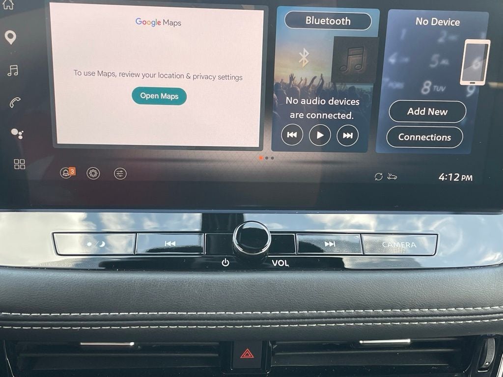 - Radio: AM/FM NissanConnect w/Navigation -inc: 6 speakers plus 2 tweeters, hybrid radio, wireless Apple CarPlay, wireless Android Auto, 12.3" color HD display, Bluetooth, 2 front USB type-C, Wi-Fi hotspot, Alexa Built-In, Google Built-In, NissanConnect Services powered by SiriusXM, SiriusXM Traffic and SiriusXM Travel Link