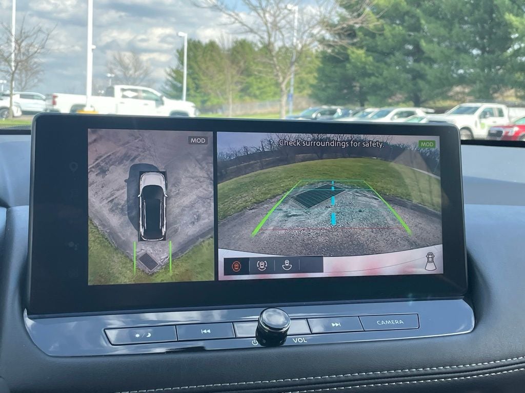 AWD, 4-Wheel Disc Brakes, 5.676 Axle Ratio, 6 Speakers, ABS brakes, Air Conditioning, Alloy wheels, AM/FM radio: SiriusXM w/360L, Auto High-beam Headlights, Auto-dimming Rear-View mirror, Automatic temperature control, Brake assist, Bumpers: body-color, Delay-off headlights, Driver door bin, Driver vanity mirror, Dual front impact airbags, Dual front side impact airbags, Electronic Stability Control, Emergency communication system: NissanConnect Services, First Aid Kit, Floor Mats w/2-Piece Cargo Area Protector, Four wheel independent suspension, Front anti-roll bar, Front Bucket Seats, Front Center Armrest, Front dual zone A/C, Front reading lights, Fully automatic headlights, Heated door mirrors, Heated Front Bucket Seats, Heated front seats, Heated steering wheel, Illuminated entry, Knee airbag, Leather steering wheel, Leather-Appointed Seat Trim, Low tire pressure warning, Navigation system: NissanConnect with Navigation and Services, NissanConnect featuring Apple CarPlay and Android Auto, Occupant sensing airbag, Outside temperature display, Overhead airbag, Overhead console, Panic alarm, Passenger door bin, Passenger vanity mirror, Power door mirrors, Power driver seat, Power Liftgate, Power passenger seat, Power steering, Power windows, Radio data system, Radio: AM/FM NissanConnect w/Navigation, Rear anti-roll bar, Rear seat center armrest, Rear side impact airbag, Rear window defroster, Rear window wiper, Remote keyless entry, Retractable Cargo Cover, Security system, Speed control, Speed-Sensitive Wipers, Split folding rear seat, Spoiler, Steering wheel mounted audio controls, Tachometer, Telescoping steering wheel, Tilt steering wheel, Traction control, Trip computer, Turn signal indicator mirrors, Variably intermittent wipers, Wheels: 19 Dark Painted Machine Finished Alloy, AWD.