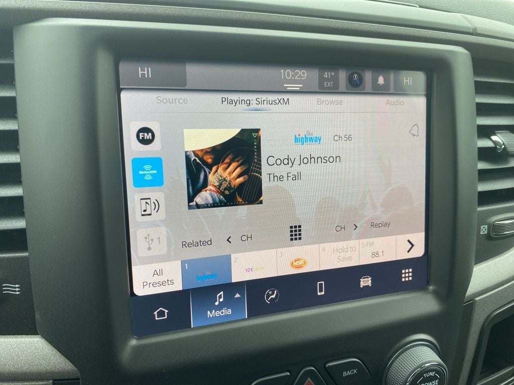 C. Harper Select Certified, 17 x 7 Steel Wheels, 20 x 8 Aluminum Wheels, 3.21 Rear Axle Ratio, 4-Wheel Disc Brakes, 40/20/40 Split Bench Seat, 6 Speakers, ABS brakes, Active Grille Shutters, Air Conditioning, Air Conditioning ATC w/Dual Zone Control, AM/FM radio, Apple CarPlay, Audio Input Jack for Mobile Devices, Black Exterior Mirrors, Body Color Upper Fascia, Brake assist, Bright Rear Bumper, Carpet Floor Covering, Center Hub, Class IV Receiver Hitch, Cloth 40/20/40 Bench Seat, Compass, Delay-off headlights, Driver door bin, Dual front impact airbags, Dual front side impact airbags, Dual Rear Exhaust w/Bright Tips, Electronic Shift, Electronic Stability Control, Electronics Group, Exterior Mirrors w/Heating Element, Front anti-roll bar, Front Armrest w/3 Cupholders, Front Center Armrest, Front Floor Mats, Front Fog Lamps, Front License Plate Bracket, Front wheel independent suspension, Fully automatic headlights, GPS Antenna Input, Heated door mirrors, Heavy Duty Vinyl 40/20/40 Split Bench Seat, Integrated Center Stack Radio, Integrated Voice Command w/Bluetooth®, Low tire pressure warning, Manual Adjust Seats, MOPAR Front & Rear Rubber Floor Mats, MOPAR Spray In Bedliner, Occupant sensing airbag, Outside temperature display, Overhead airbag, Overhead console, ParkView Rear Back-Up Camera, Passenger door bin, Power door mirrors, Power steering, Power windows, Quick Order Package 26B Tradesman, Radio data system, Radio: Uconnect 3 w/5 Display, Radio: Uconnect 5 W w/8.4 Display, Rear anti-roll bar, Rear Floor Mats, Rear Folding Seat, Rear seat center armrest, Rear step bumper, Remote Keyless Entry w/All-Secure, Remote USB Port, Remote USB Port - Charge Only, SiriusXM Guardian - Included Trial (B), SiriusXM Satellite Radio, Speed control, Storage Tray, Tachometer, Tilt steering wheel, Tip Start, Traction control, Tradesman SXT Package, USB Host Flip, Variably intermittent wipers, Voltmeter.