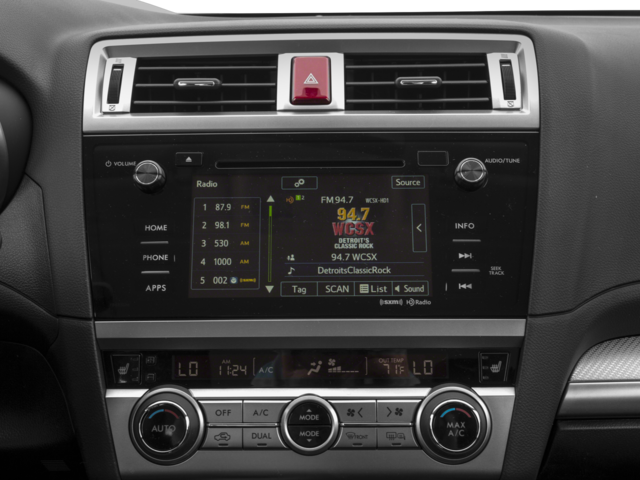 • Radio: Subaru Starlink 7.0" Multimedia Plus System -inc: AM/FM Stereo HD Radio w/single-disc CD player, MP3/WMA/CRR/RW file capability, multi touch gesture high resolution 7.0" LCD display screen, voice activated controls, Bluetooth® audio streaming connectivity, Bluetooth® hands-free phone connectivity, Bluetooth® hands-free text messaging connectivity, iPod control capability, SiriusXM all access radio (subscription required), SiriusXM travel link (subscription required), dual USB port, 3.5mm auxiliary input jack, 6 speakers, rear in glass audio antenna and roof mounted audio/satellite and connected services antenna, Aha StarLink enrollment cannot be applicable to Fleet Management Companies (FMCs) or to Commercial fleet accounts at this time.