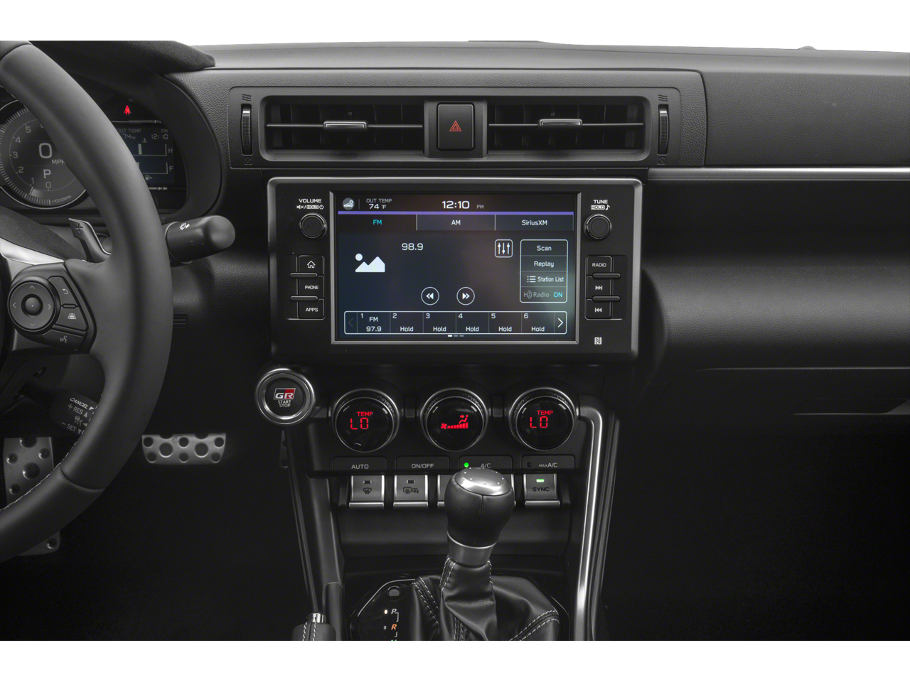 2-Stage Heated Sport Front Seats, 4-Wheel Disc Brakes, 8 Speakers, ABS brakes, Air Conditioning, Alloy wheels, AM/FM radio: SiriusXM, Apple CarPlay/Android Auto, Auto Dimming Mirror w/HomeLink (TMS), Auto High-beam Headlights, Automatic temperature control, Black GR Performance Dual Exhaust (TMS), Black Rear Bumper Applique (TMS), Brake assist, Bumpers: body-color, Delay-off headlights, Door Edge Guards (TMS), Driver door bin, Driver vanity mirror, Dual front impact airbags, Dual front side impact airbags, Electronic Stability Control, Emergency communication system: Safety Connect (1-year trial), Exterior Parking Camera Rear, First Aid Kit (TMS), Four wheel independent suspension, Front anti-roll bar, Front Bucket Seats, Front dual zone A/C, Front reading lights, Fully automatic headlights, GR Fender Vent Inserts (TMS), GR Key Gloves (TMS), Heated door mirrors, Heated front seats, Illuminated entry, Knee airbag, Leather Shift Knob, Leather steering wheel, Low tire pressure warning, Occupant sensing airbag, Outside temperature display, Overhead airbag, Panic alarm, Passenger door bin, Passenger vanity mirror, Power door mirrors, Power steering, Power windows, Quick Charge Cable (TMS), Radio data system, Radio: GR86 Audio, Rear anti-roll bar, Rear Parking Sensors, Rear window defroster, Remote keyless entry, Security system, Speed control, Spoiler, Steering wheel mounted audio controls, Tachometer, Telescoping steering wheel, Tilt steering wheel, Traction control, Trip computer, Ultrasuede Seat Trim w/Leather Bolsters, Variably intermittent wipers, Wheels: 18 Matte-Black-Painted Alloy.