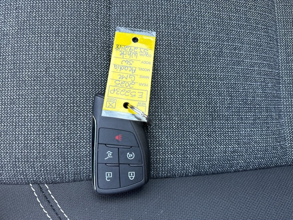Clean CARFAX. CARFAX One-Owner.Certification Program Details: For vehicles less than 10 model years old with fewer than 100,000 miles, this includes a 12-month/12,000-mile limited bumper-to-bumper warranty. Vehicle exchange: A 10-day or 100-mile window for exchanging the vehicle if you are not satisfied with your purchase. Roadside assistance: 24-hour roadside assistance for services like jump-starts, fuel delivery, and flat tire changes.Summit White 2025 GMC Acadia Elevation AWD 8-Speed Automatic 2.5L DOHCCarBravo with the 12 month 12,000 mile warranty Certified, AWD, After Dark Cloth, 12 Speakers, 18 x 7.5 Aluminum Wheels, 2-Way Driver Power Lumbar Seat Adjuster, 3.49 Final Drive Axle Ratio, 3rd row seats: split-bench, 4-Way Manual Front Passenger Seat Adjuster, 4-Wheel Disc Brakes, 8-Passenger Seating (2-3-3 Seating Configuration), 8-Way Power Driver Seat Adjuster, ABS brakes, Air Conditioning, Alloy wheels, AM/FM radio: SiriusXM with 360L, Apple CarPlay/Android Auto, Auto High-beam Headlights, Auto-dimming Rear-View mirror, Automatic temperature control, Bodyside moldings, Bose Premium 12-Speaker System with Sub-Woofer, Brake assist, Bumpers: body-color, Cloth Seat Trim, Compass, Delay-off headlights, Driver door bin, Driver vanity mirror, Dual front impact airbags, Dual front side impact airbags, Electronic Stability Control, Emergency communication system: OnStar Services capable, Exterior Parking Camera Rear, Four wheel independent suspension, Front anti-roll bar, Front Bucket Seats, Front Center Armrest, Front dual zone A/C, Front fog lights, Front License Plate Bracket, Front reading lights, Fully automatic headlights, Heated door mirrors, Heated Driver and Front Passenger Seats, Heated front seats, Heated steering wheel, Illuminated entry, Leather steering wheel, Low tire pressure warning, Navigation System, Occupant sensing airbag, Outside temperature display, Overhead airbag, Overhead console, Panic alarm, Passenger door bin, Passenger vanity mirror, Power door mirrors, Power driver seat, Power Liftgate, Power steering, Power windows, Preferred Equipment Group 4SD, Radio data system, Radio: 15 Diagonal Premium GMC Infotainment System, Rear air conditioning, Rear anti-roll bar, Rear reading lights, Rear seat center armrest, Rear side impact airbag, Rear window defroster, Rear window wiper, Remote keyless entry, Security system, SiriusXM with 360L, Speed control, Speed-sensing steering, Split folding rear seat, Spoiler, Sport steering wheel, Steering wheel mounted audio controls, Tachometer, Telescoping steering wheel, Tilt steering wheel, Traction control, Trip computer, Turn signal indicator mirrors, Variably intermittent wipers, Voltmeter, AWD, After Dark Cloth.Recent Arrival! Odometer is 4420 miles below market average!